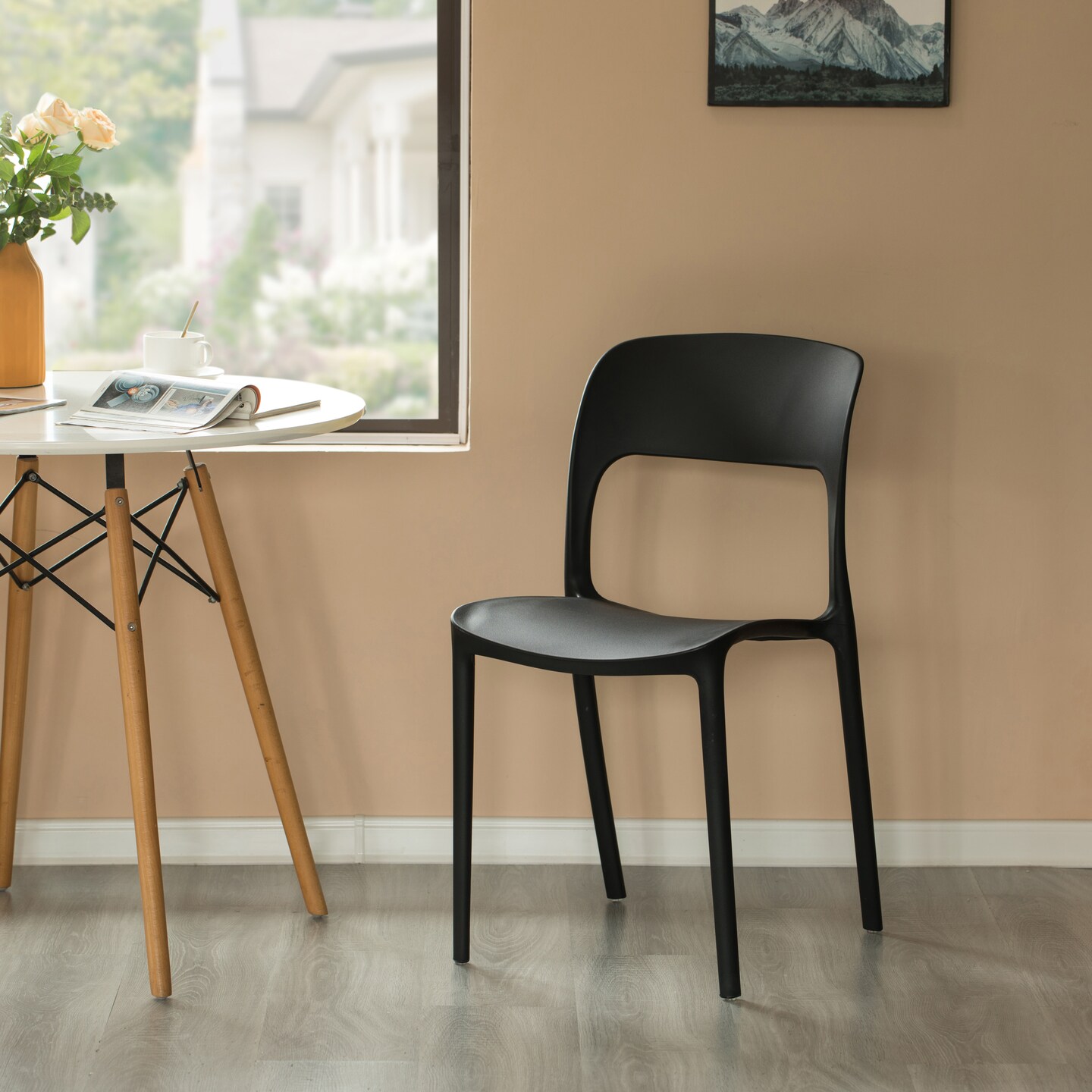 Modern Plastic Outdoor Dining Chair with Open Curved Back