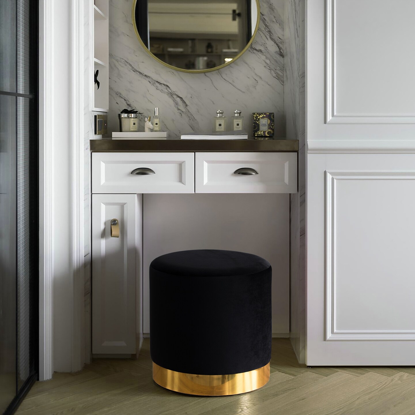 Modern Round Velvet Fabric Standard Ottoman Stool with Gold Base