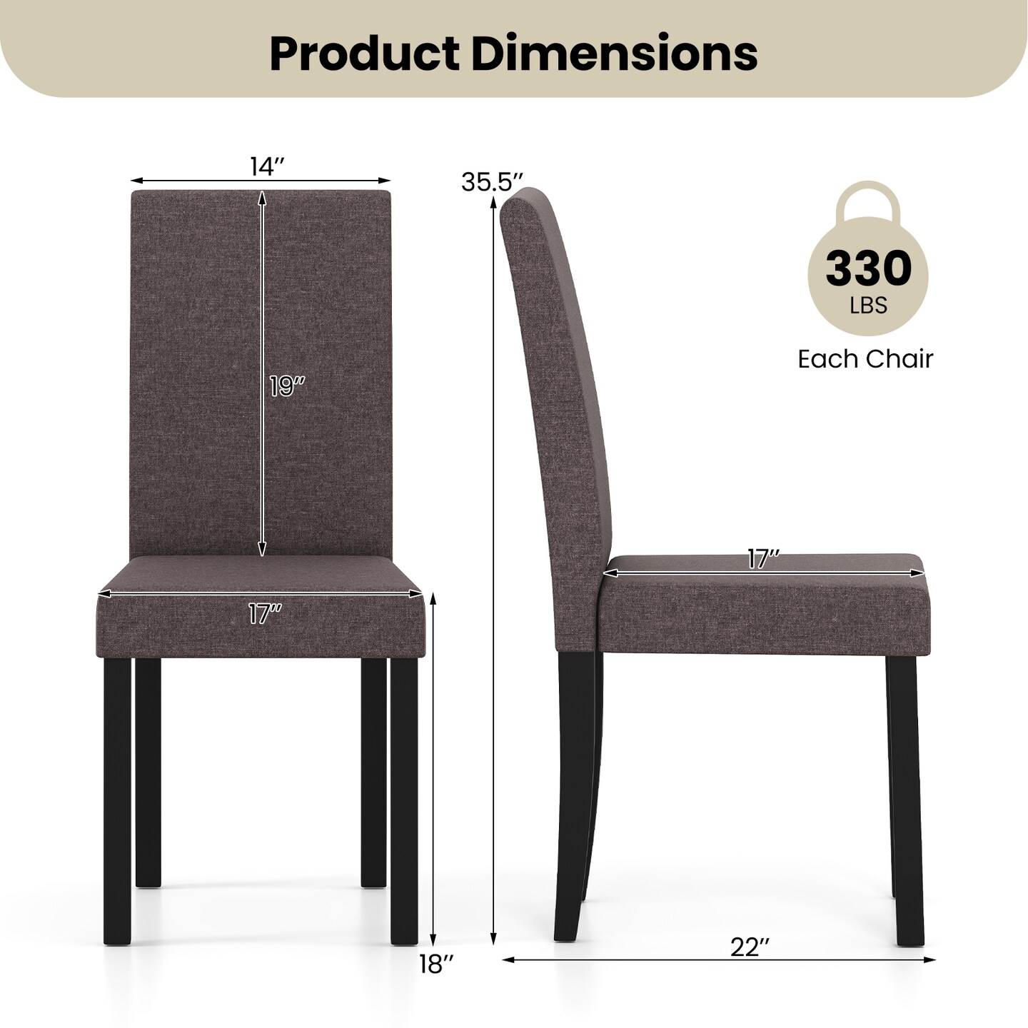 Modern Set of 2 Faux Linen Upholstery Dining Chairs with Rubber Wood Frame and Ergonomic Seat