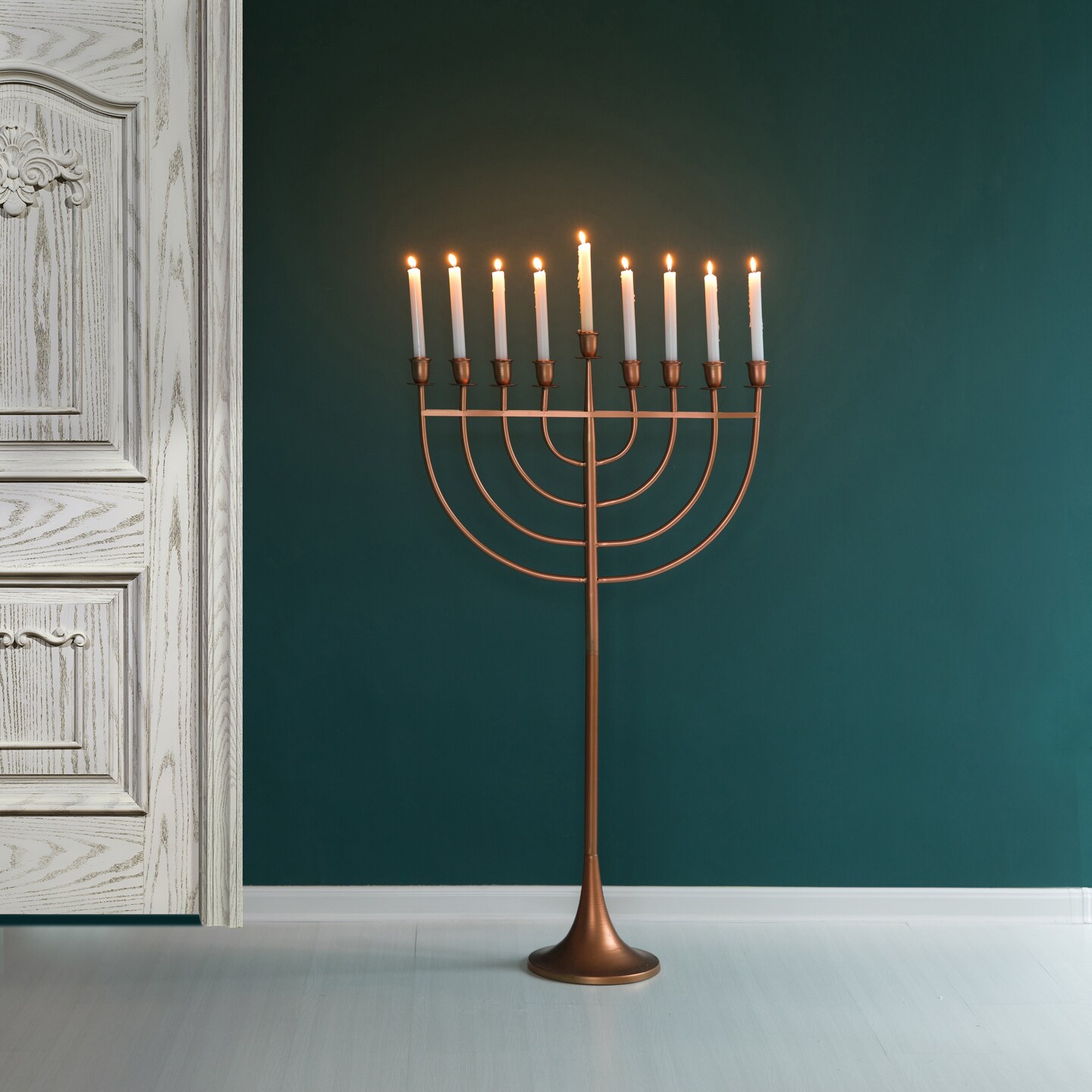 Modern Solid Metal Judaica Hanukkah Menorah 9 Branched Candelabra