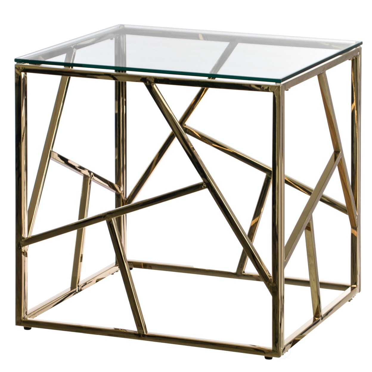 Modern Square End Side Table Tempered Glass Top Metal Coffee Table 21.75"