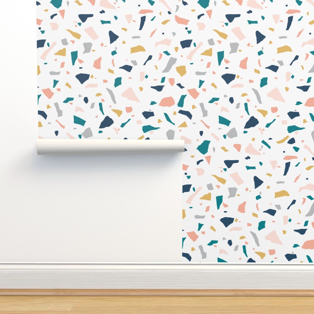 Modern Terrazzo Earthtones Neutral Speckle Trend Gender Whimsical Custom Removable Wallpaper by Spoonflower Peel & Stick Wallpaper 2FT Wide