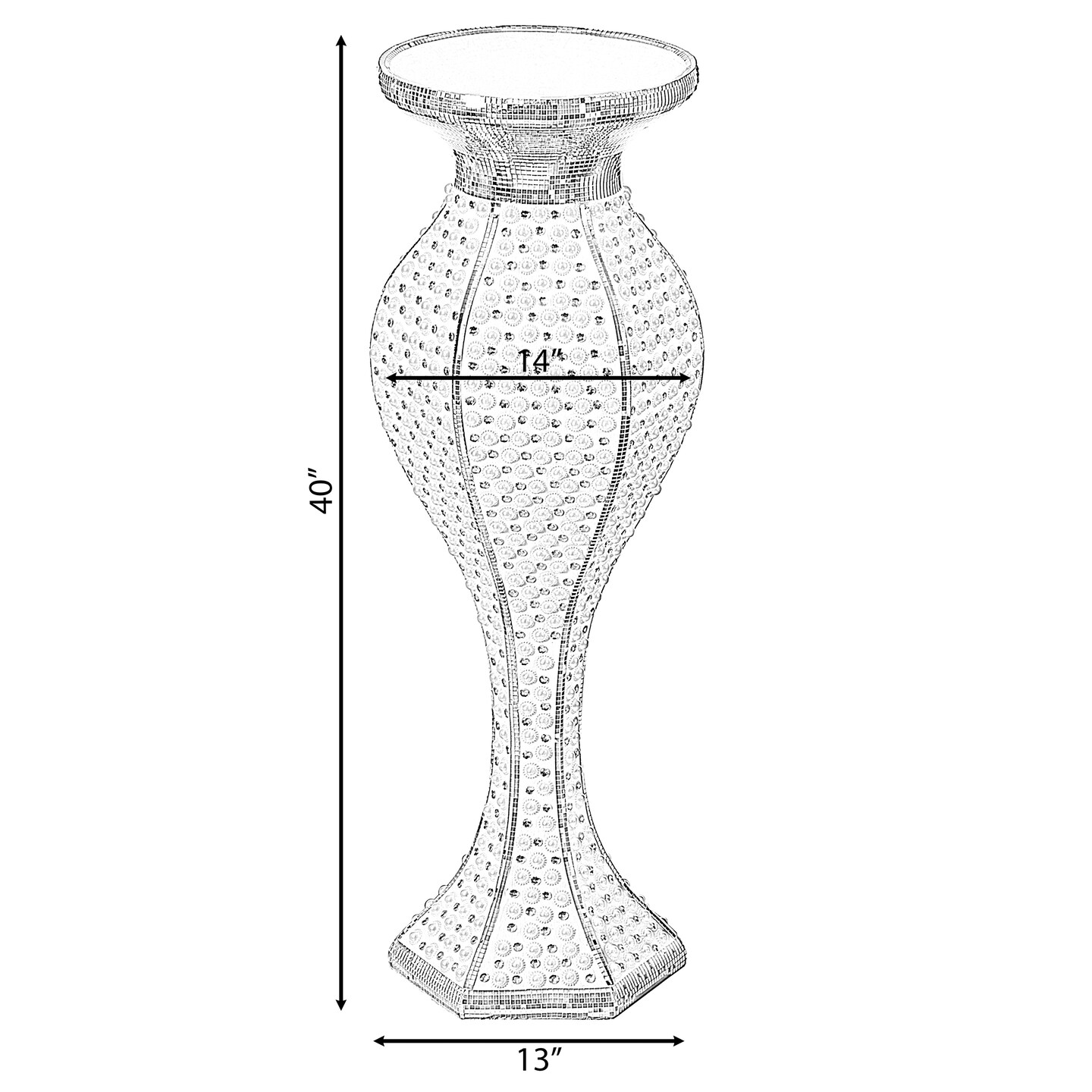 Modern Trumpet Wedding Floor Flower Vase with Silver Studs and White Pearl Design, for Living Room, Entryway or Dining Room, 40 Inch