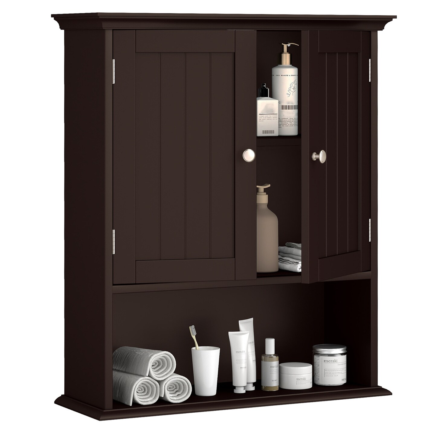 Modern Wall-Mounted Storage Cabinet for Bathroom Kitchen or Bedroom with Open Shelf and Adjustable Interior