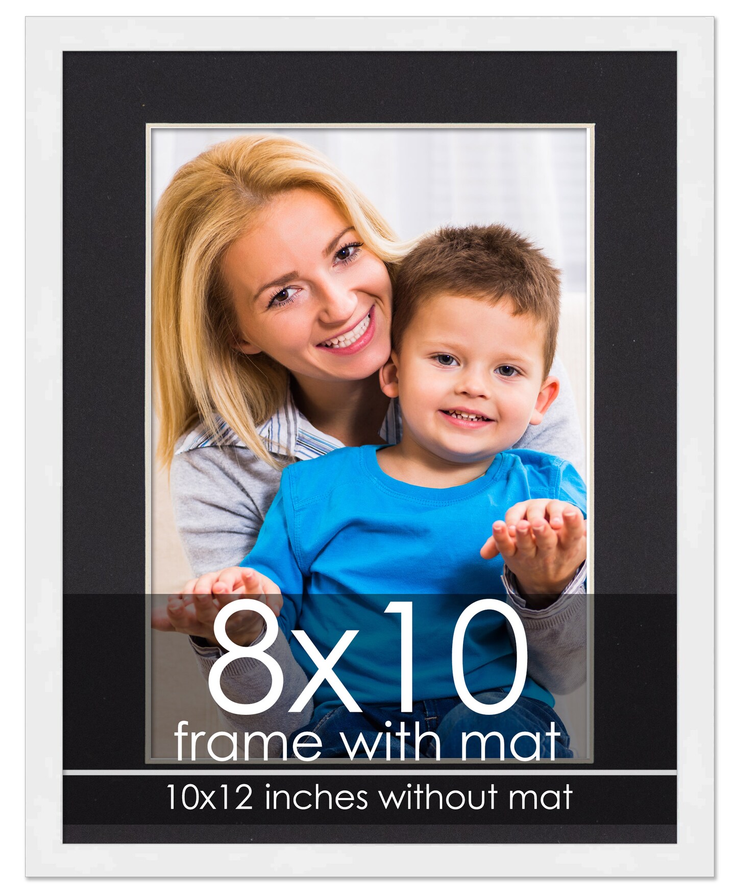Modern White Frame with Black Photo Mat, UV Acrylic Front, Foam Board Backing, 60 Sizes Available