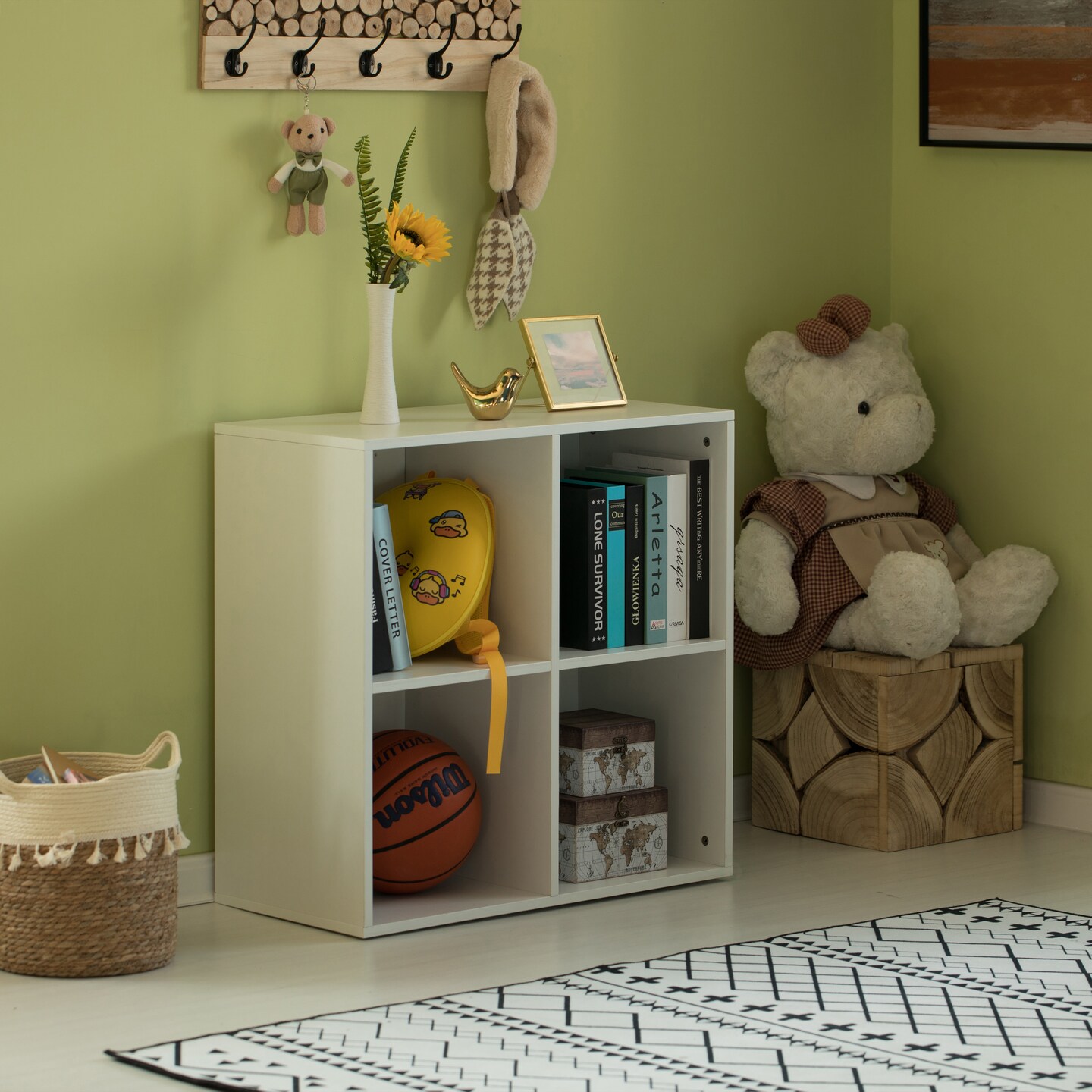 Modern Wooden Toy Storage Bookshelf 4 Cube Organizer Square Bookcase