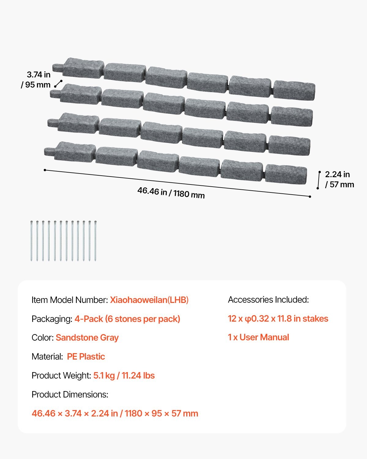 Modular Stone Landscape Edging 4-Pack Sandstone Grey PE Plastic Lawn Pathway Garden Edge