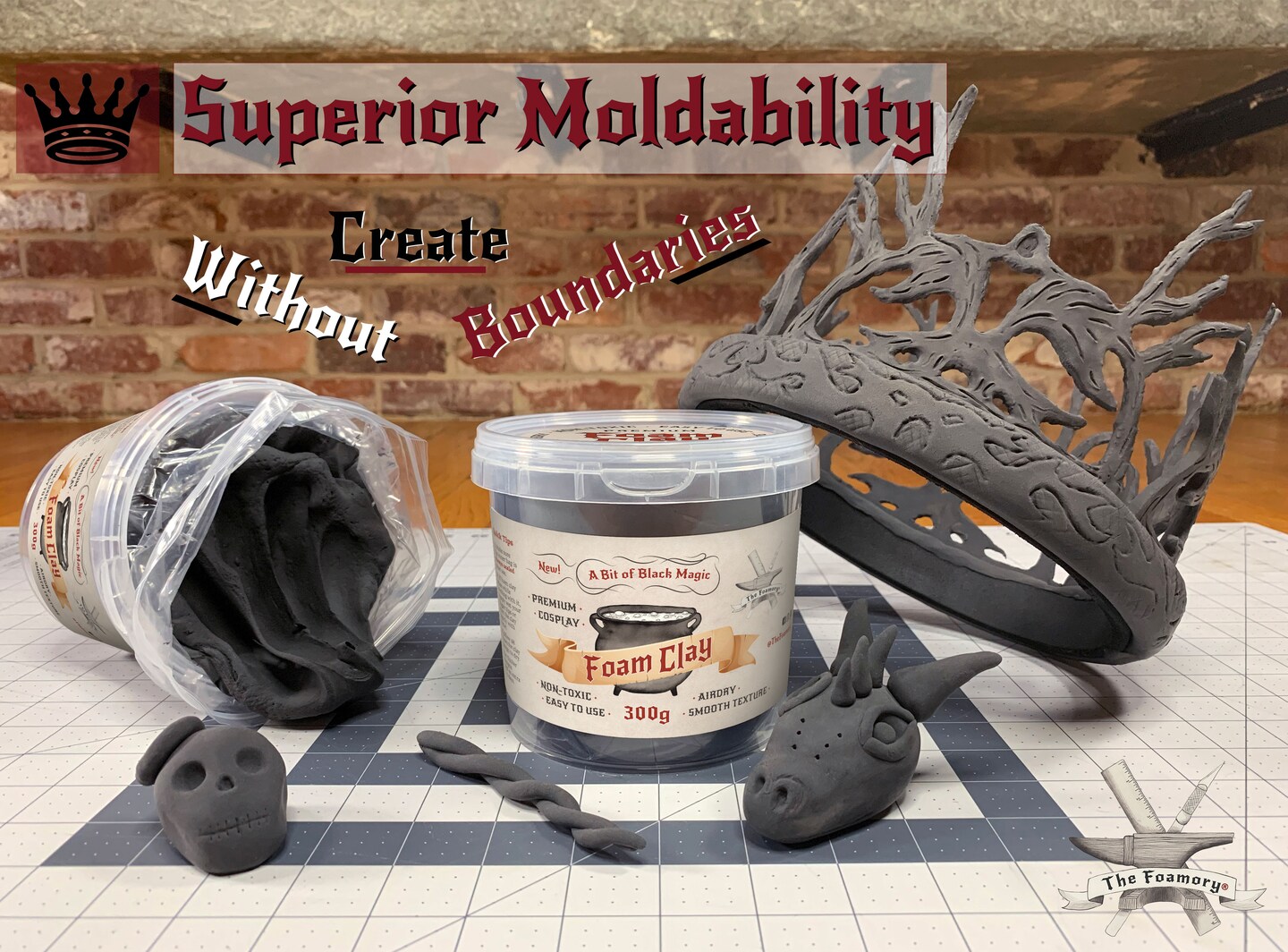 Moldable Cosplay Foam Clay (300g & 900g available in Black & White) High Density Air Dry Clay | Dries like EVA Foam | Great for Adding Details & Accessories to your Costumes & Crafts | Safe for Kids, Adults & Hand Crafts