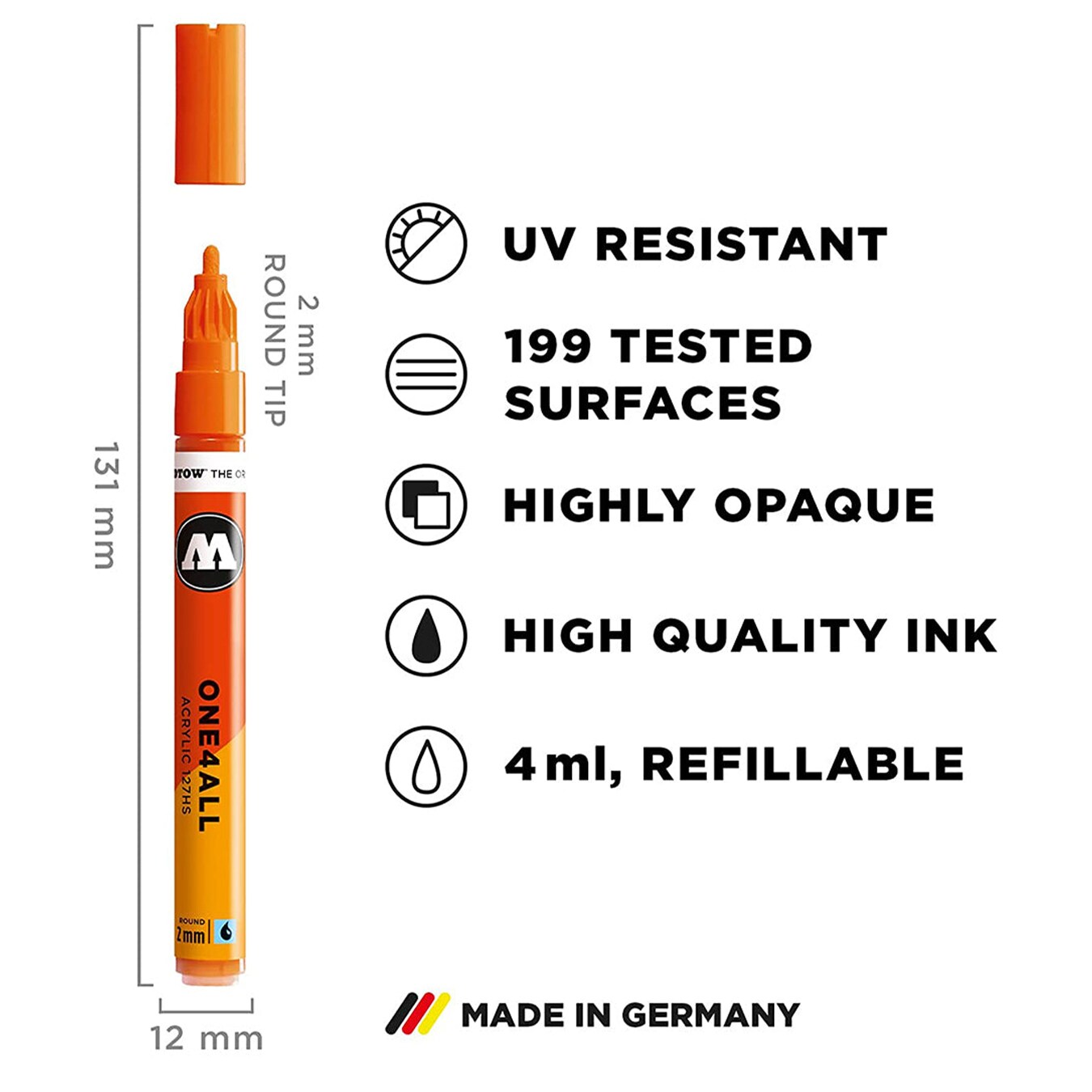 Molotow ONE4ALL Acrylic Paint Marker Character 6-Color Set, 2mm, Assorted Colors, 1 Set Each