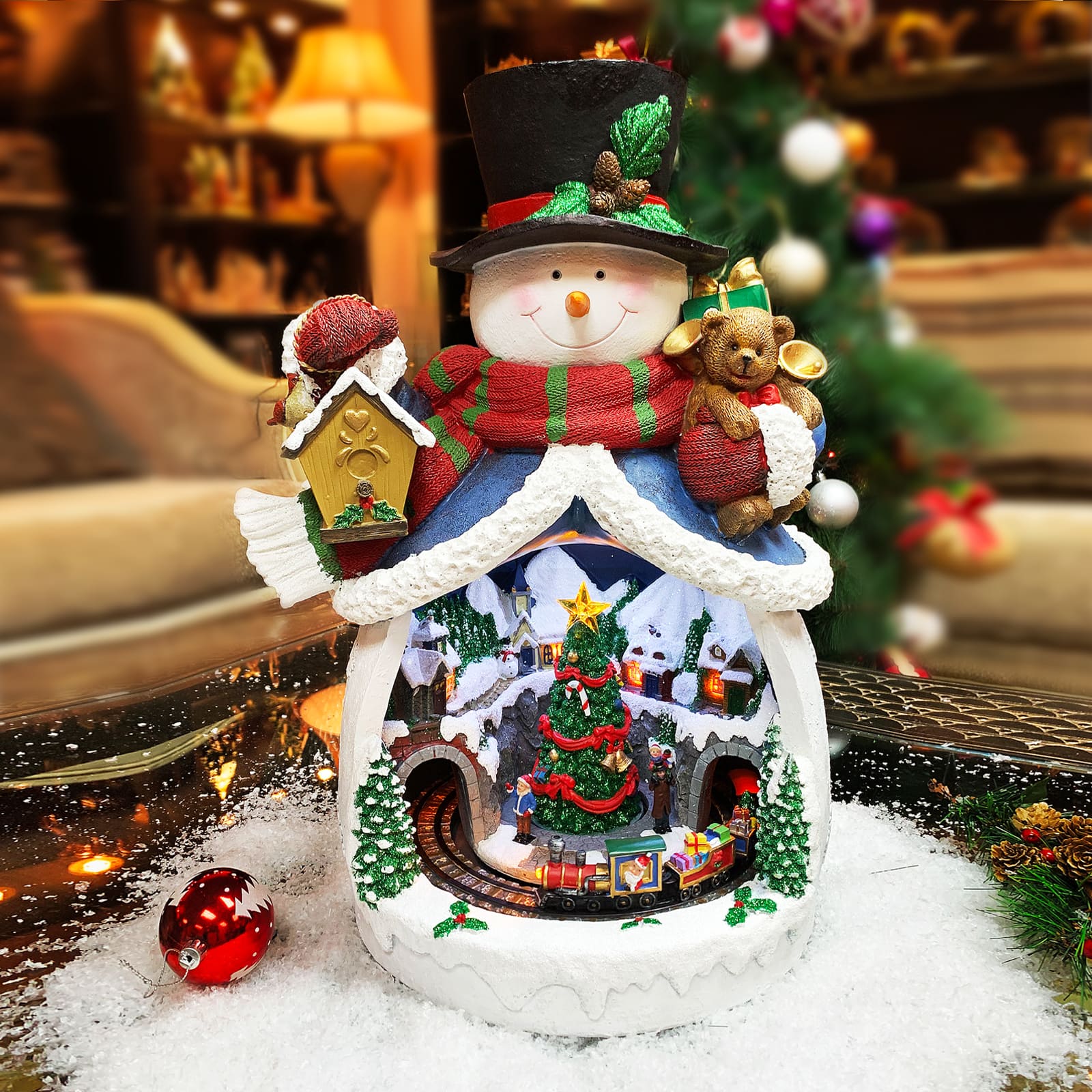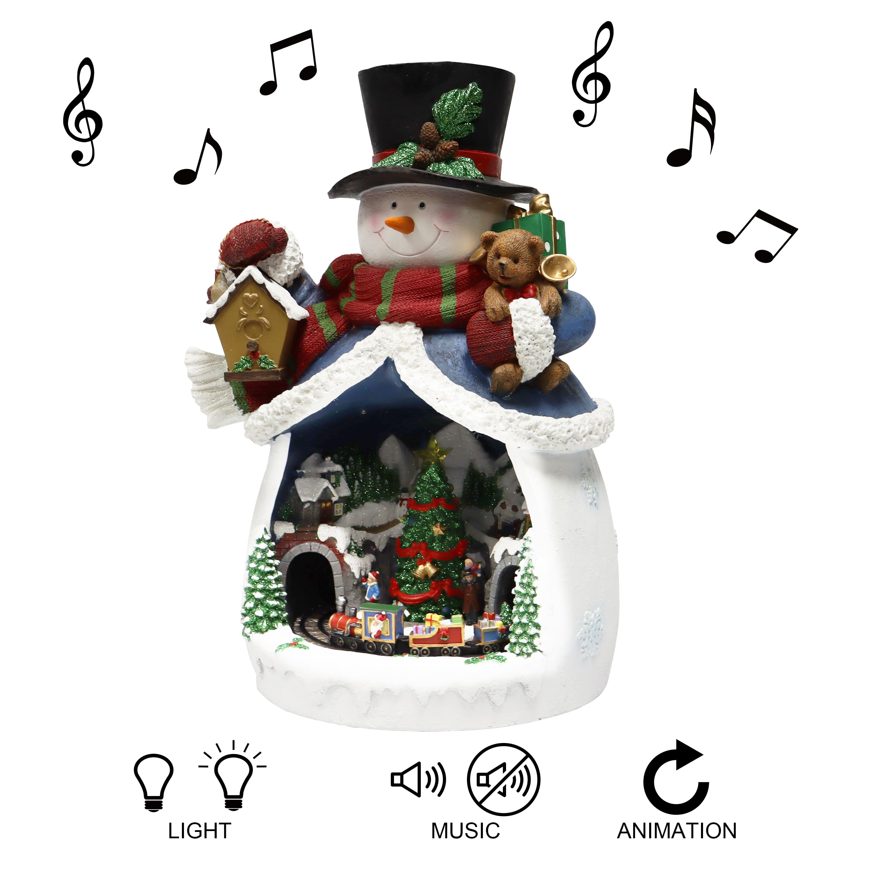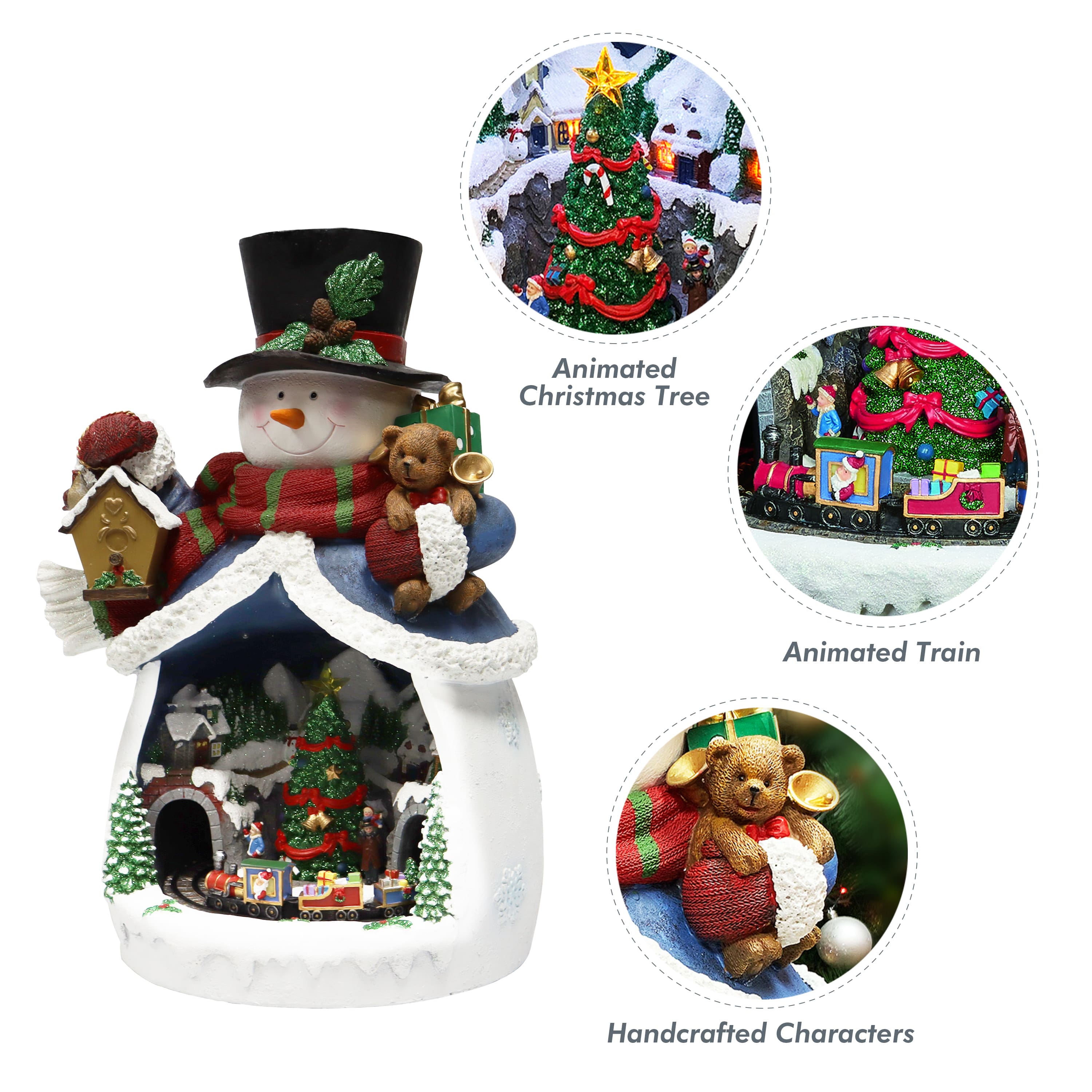 Moments in Time 18.7” Animated Snowman with Christmas Village Train Scene Décor