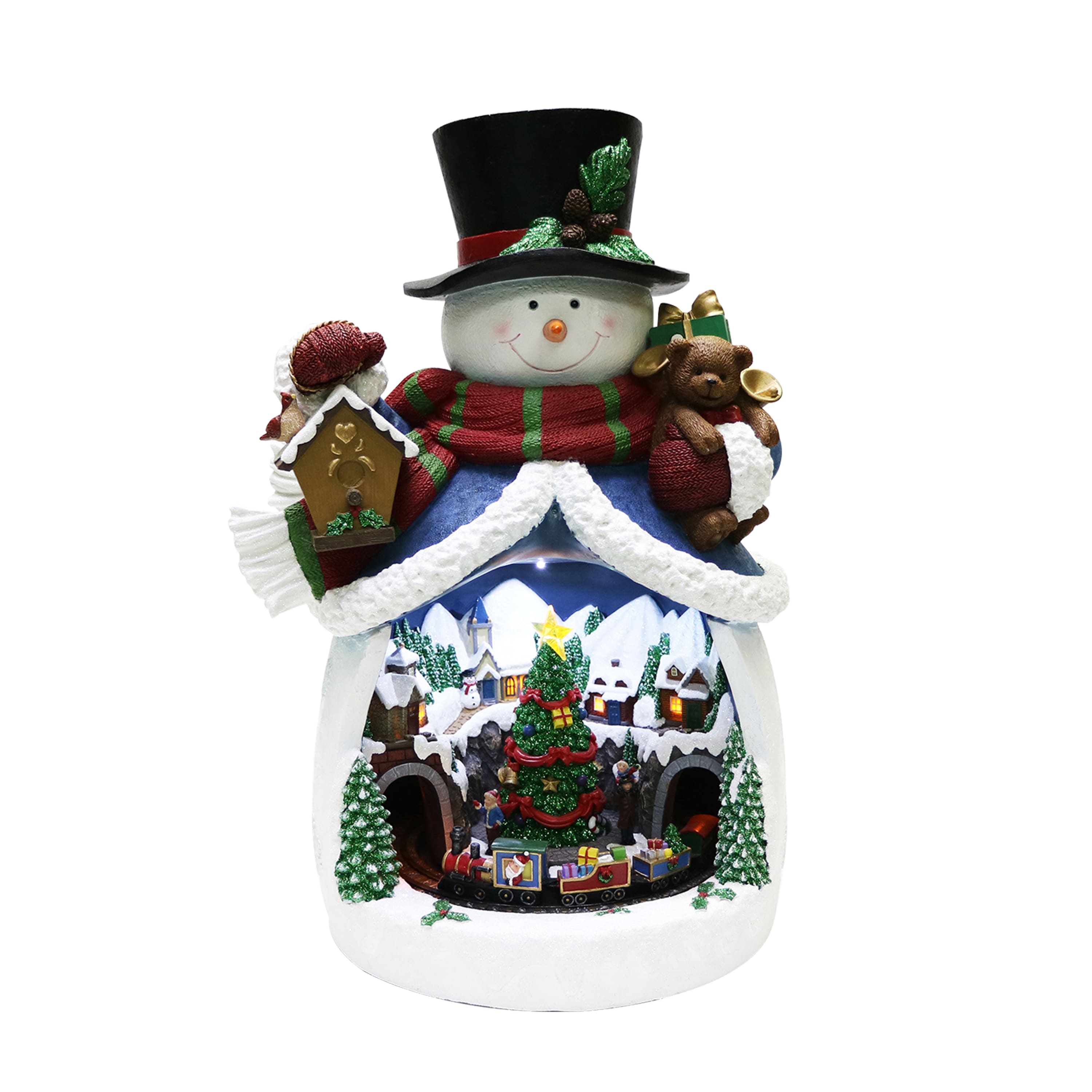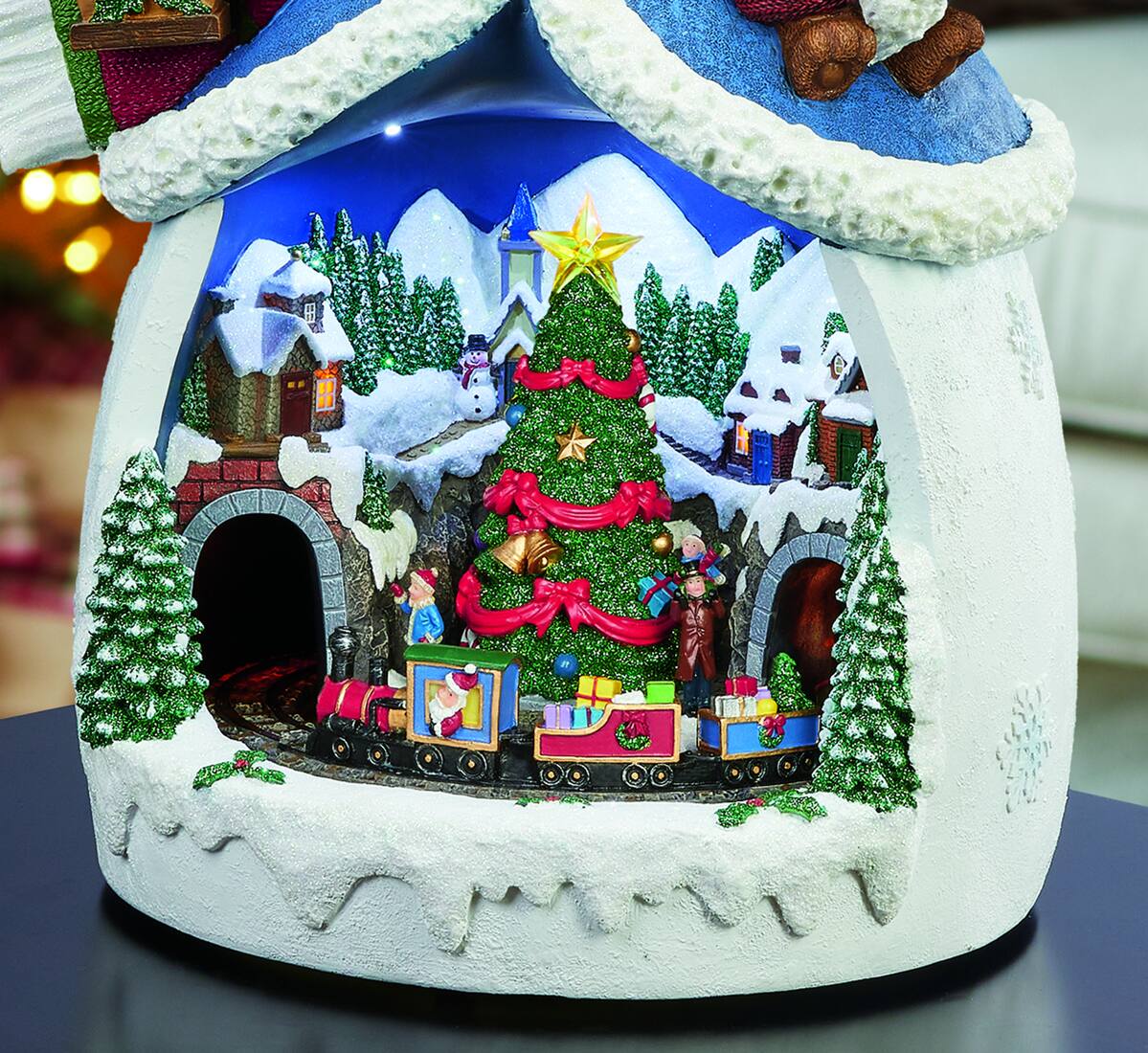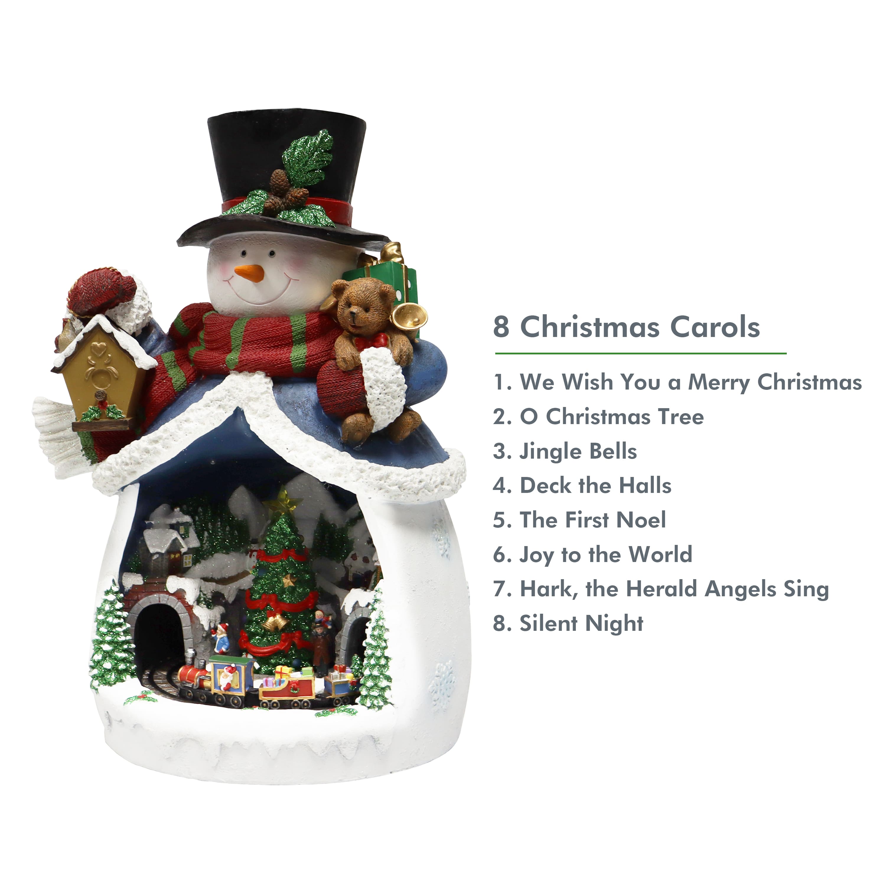 Moments in Time 18.7” Animated Snowman with Christmas Village Train Scene Décor