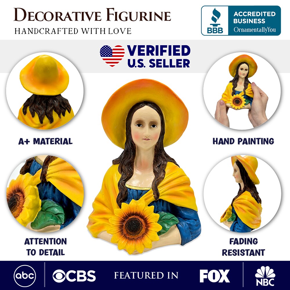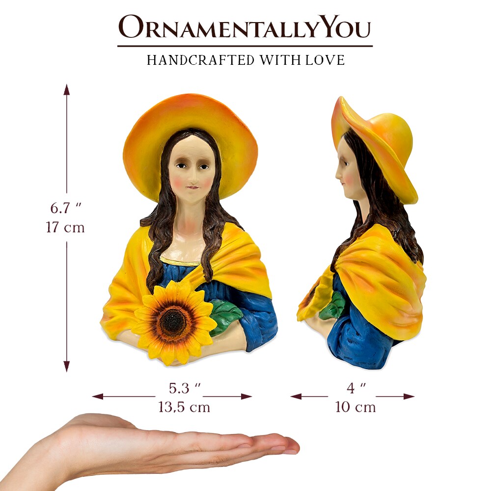 Mona Lisa The Sunflower Guardian Art Sculpture Figurine, 7" Spring Garden Statue and Leonardo Da Vinci Mix