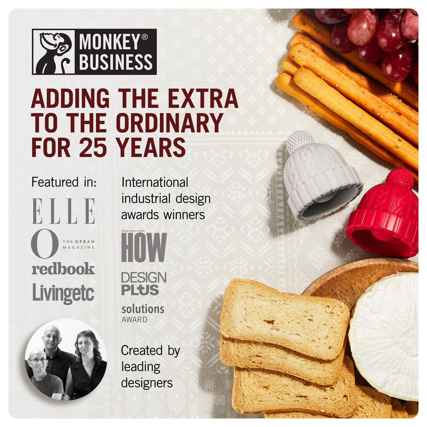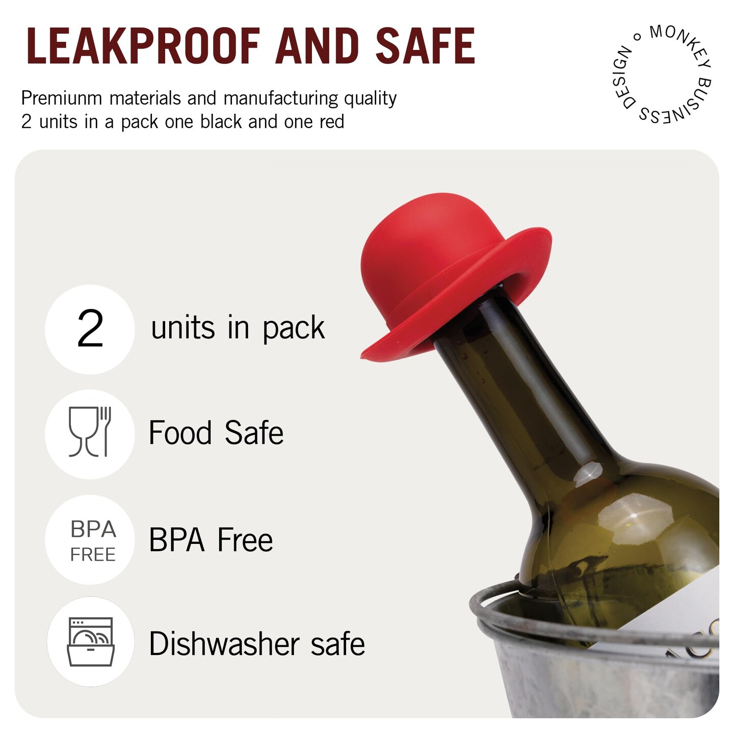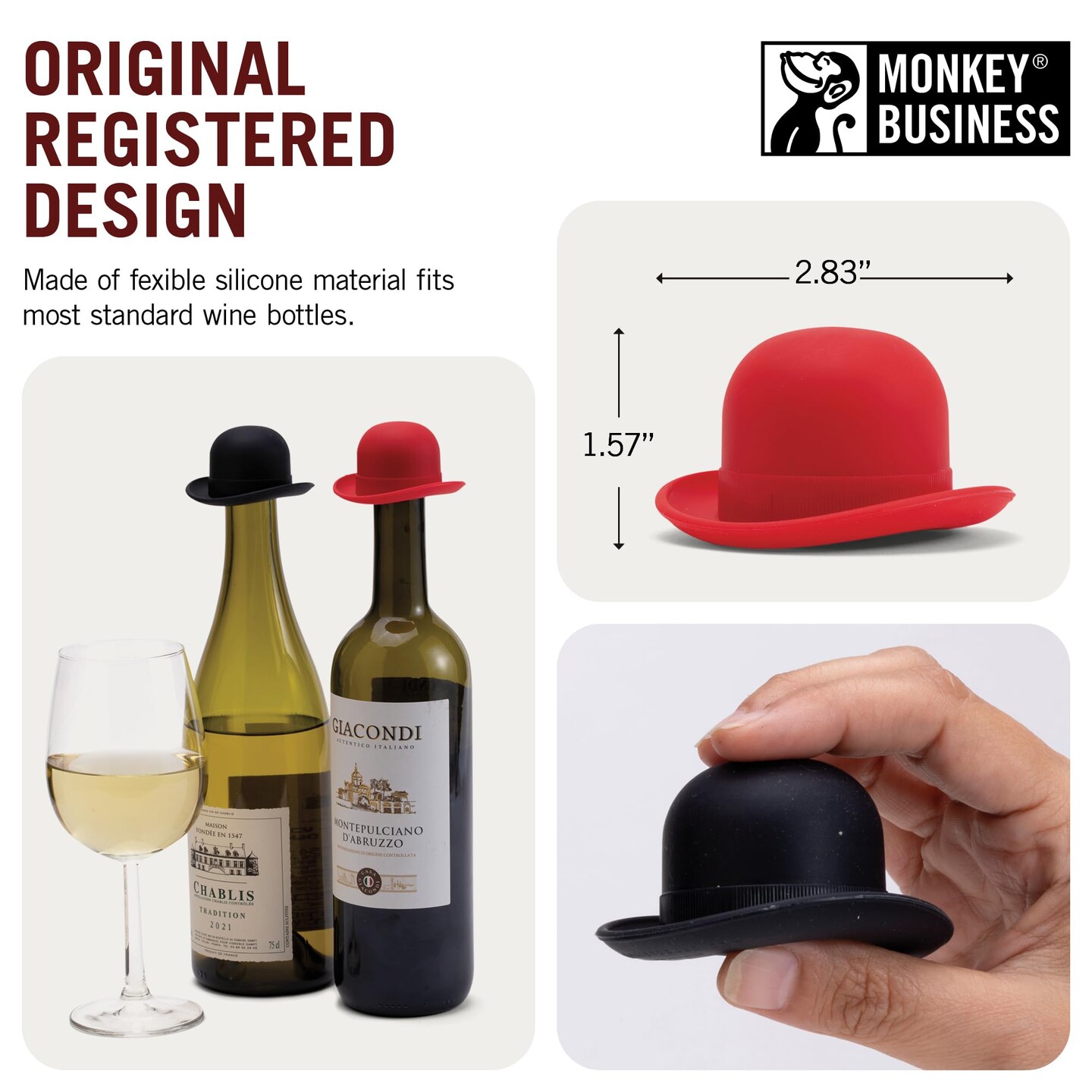 Monkey Business Silicone Wine Stopper | Seals Bottle and Keeps Wine Fresh/Cute Wine Accessories/Kitchen Gadgets/Bowler Hat Bottle Stopper (Set of 2)