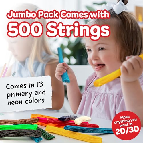 Monkey String from The Original Monkey Noodle - 500 Piece Jumbo Pack - Fidget Sensory Toys for Kids with Unique Needs - Fosters Creativity, Focus, and Fun - Make Anything In 2D or 3D (13 Colors)