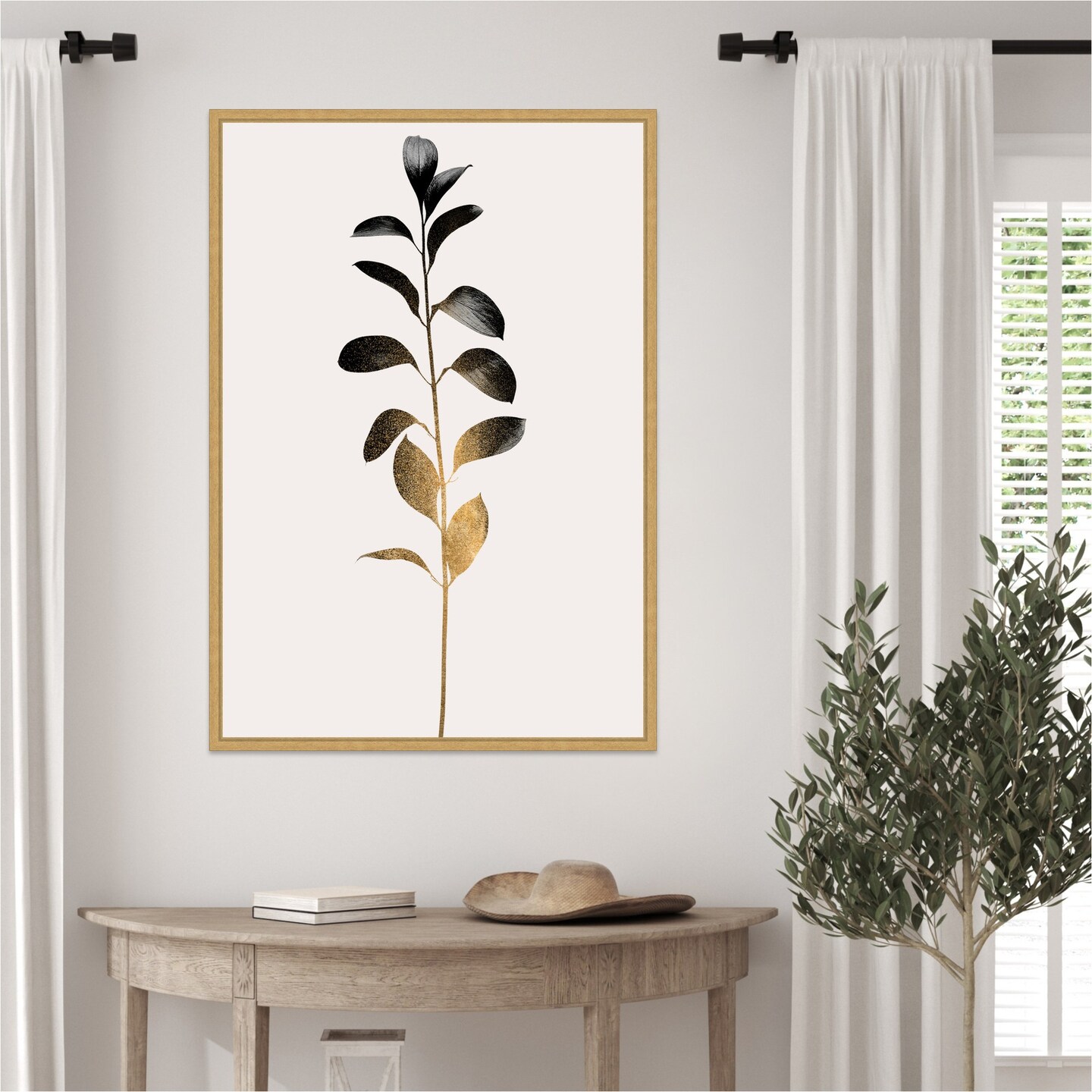 Monochromatic No 9 Dark Gold by Eins Kubistika Framed Canvas Wall Art