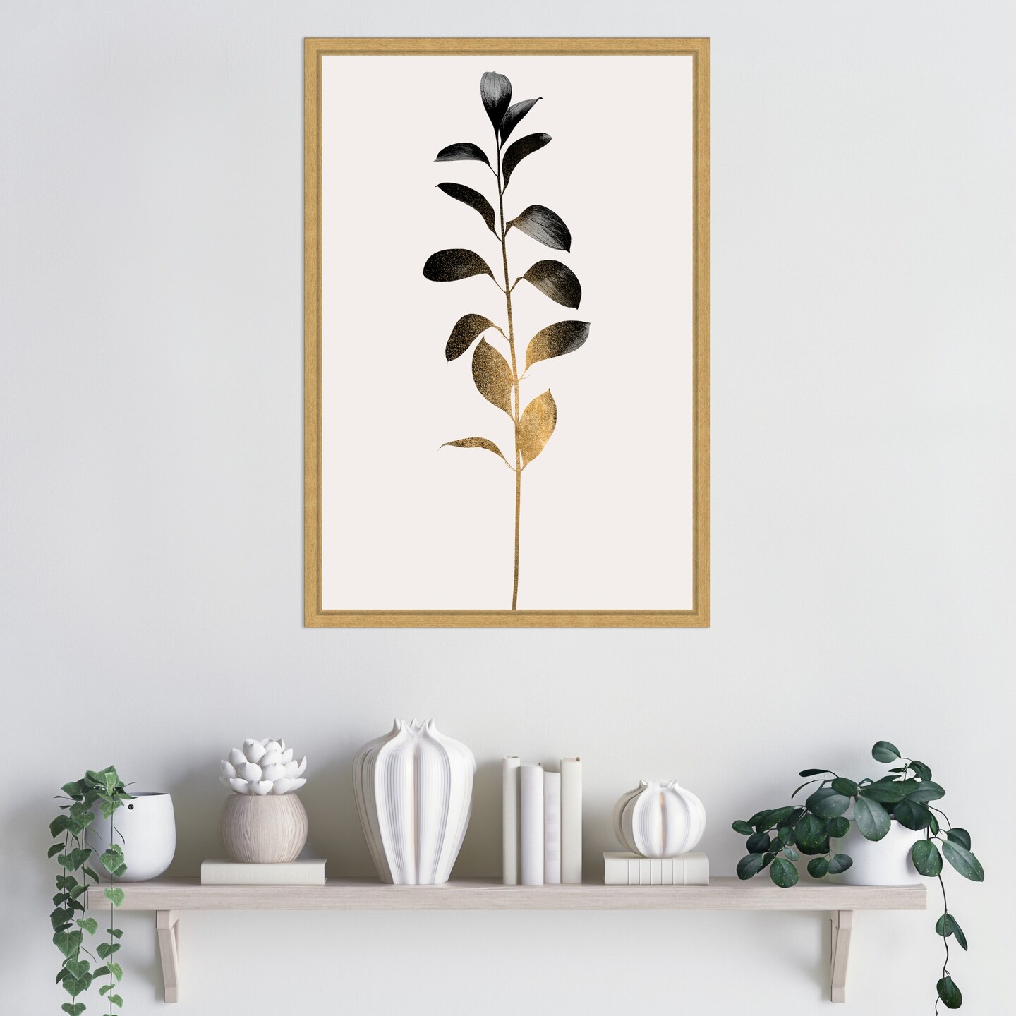 Monochromatic No 9 Dark Gold by Eins Kubistika Framed Canvas Wall Art