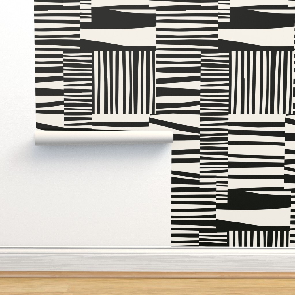 Monochrome Stripe Bold 60S Black And White Pop Art Large Print Custom Removable Wallpaper by Spoonflower Peel & Stick Wallpaper 2FT Wide