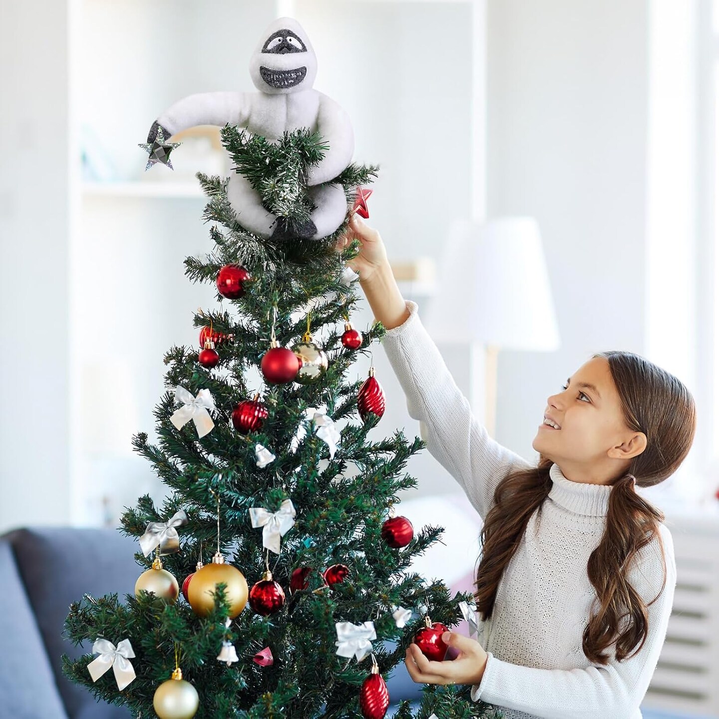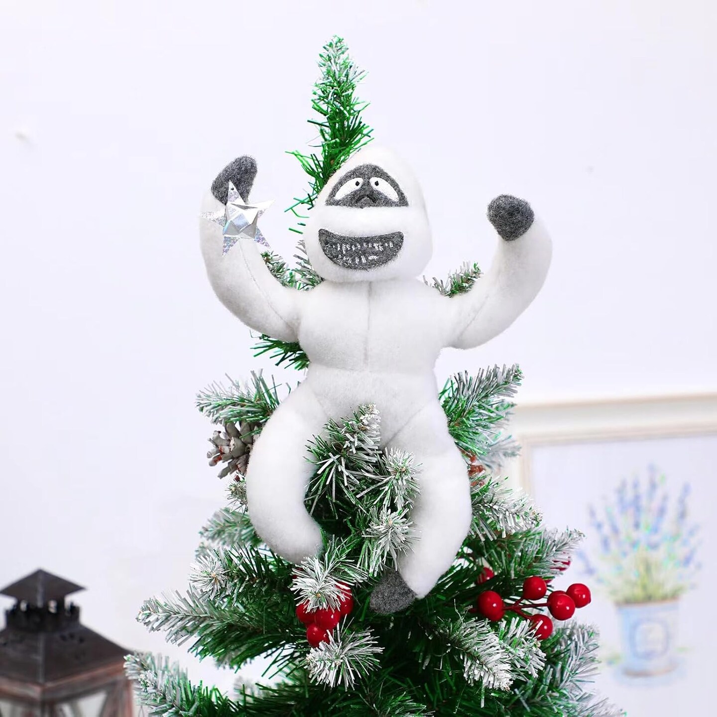 Monster Ornament, Poseable Handmade Abominable Chimpanzees Hugger with Star, Can be Hung Snowman Tree Topper Xmas Decorations (White)