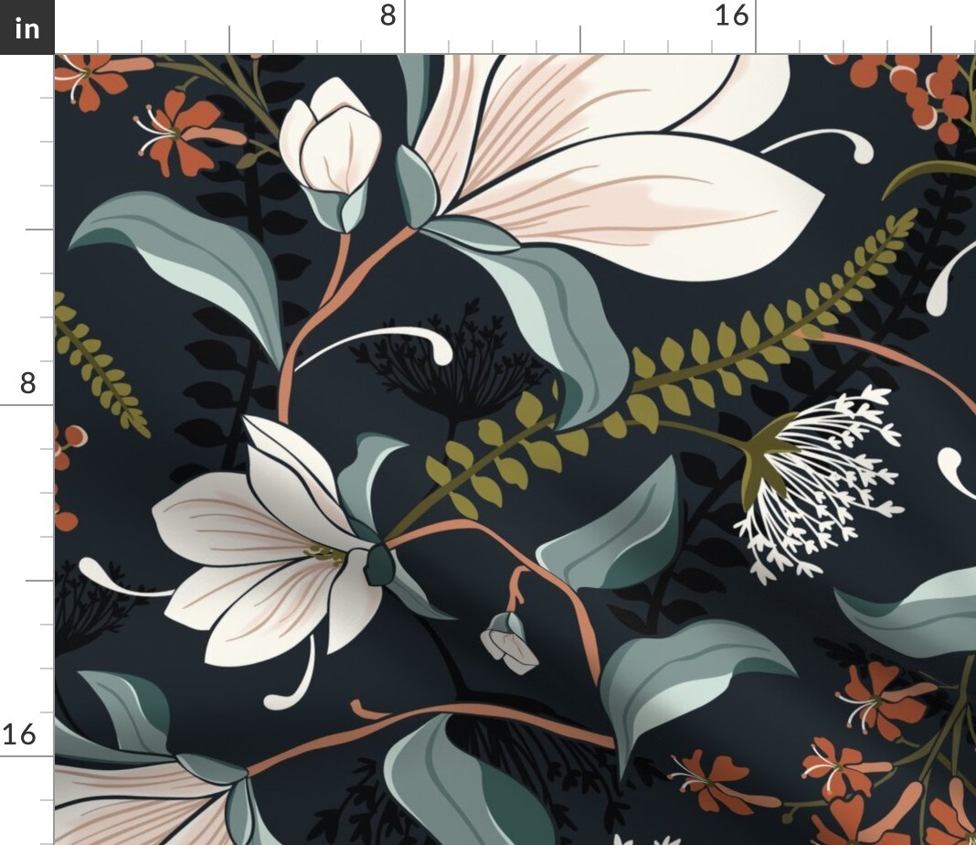 Moody Floral Dark Midnight Jumbo Scale Woodland Ferns Maximalist Custom Printed Fabric by Spoonflower Various Fabrics by the Yard or Fat Quarter