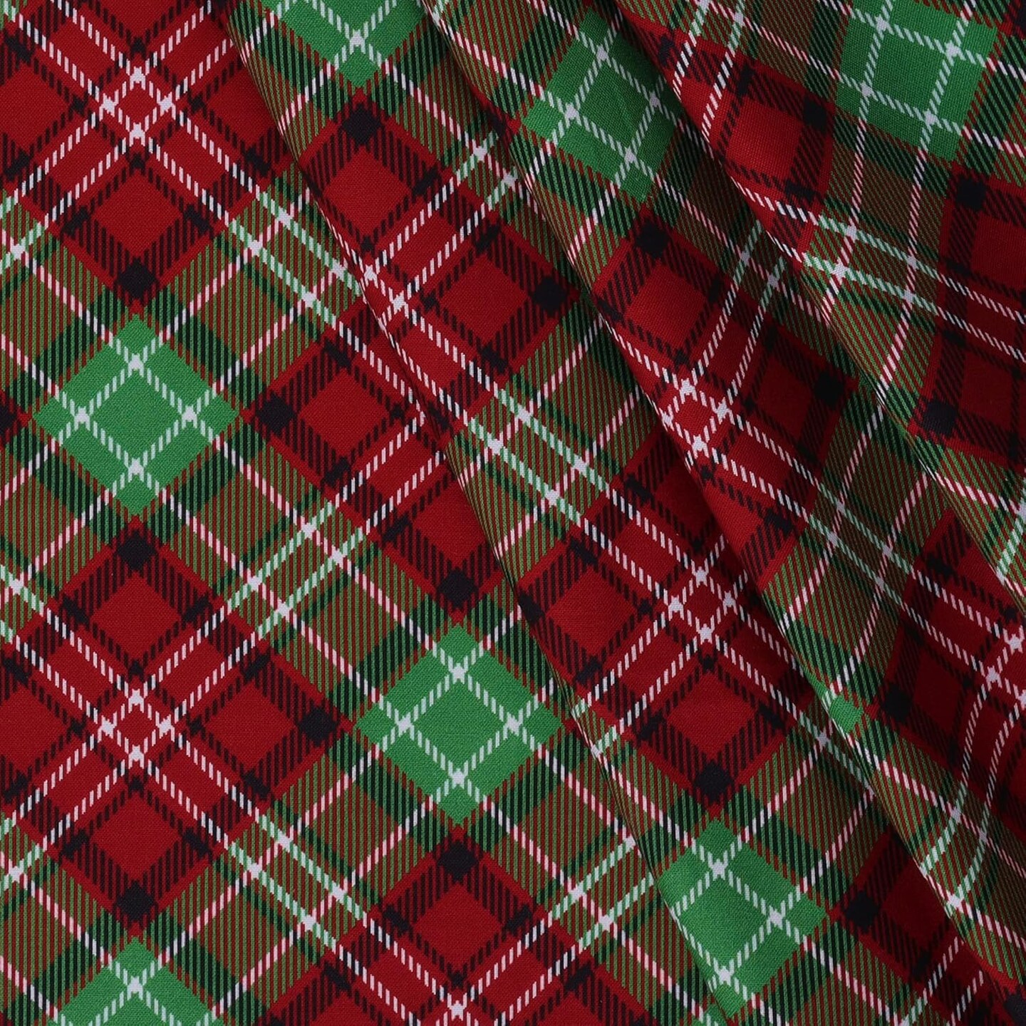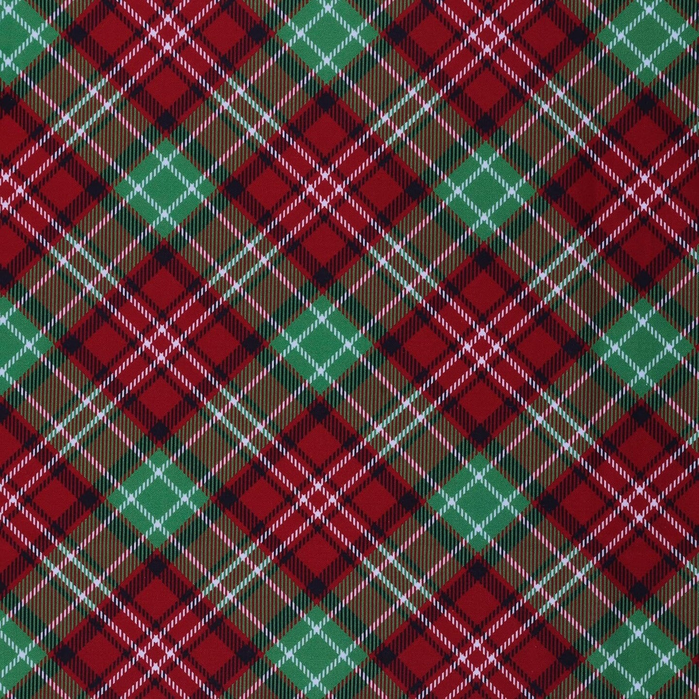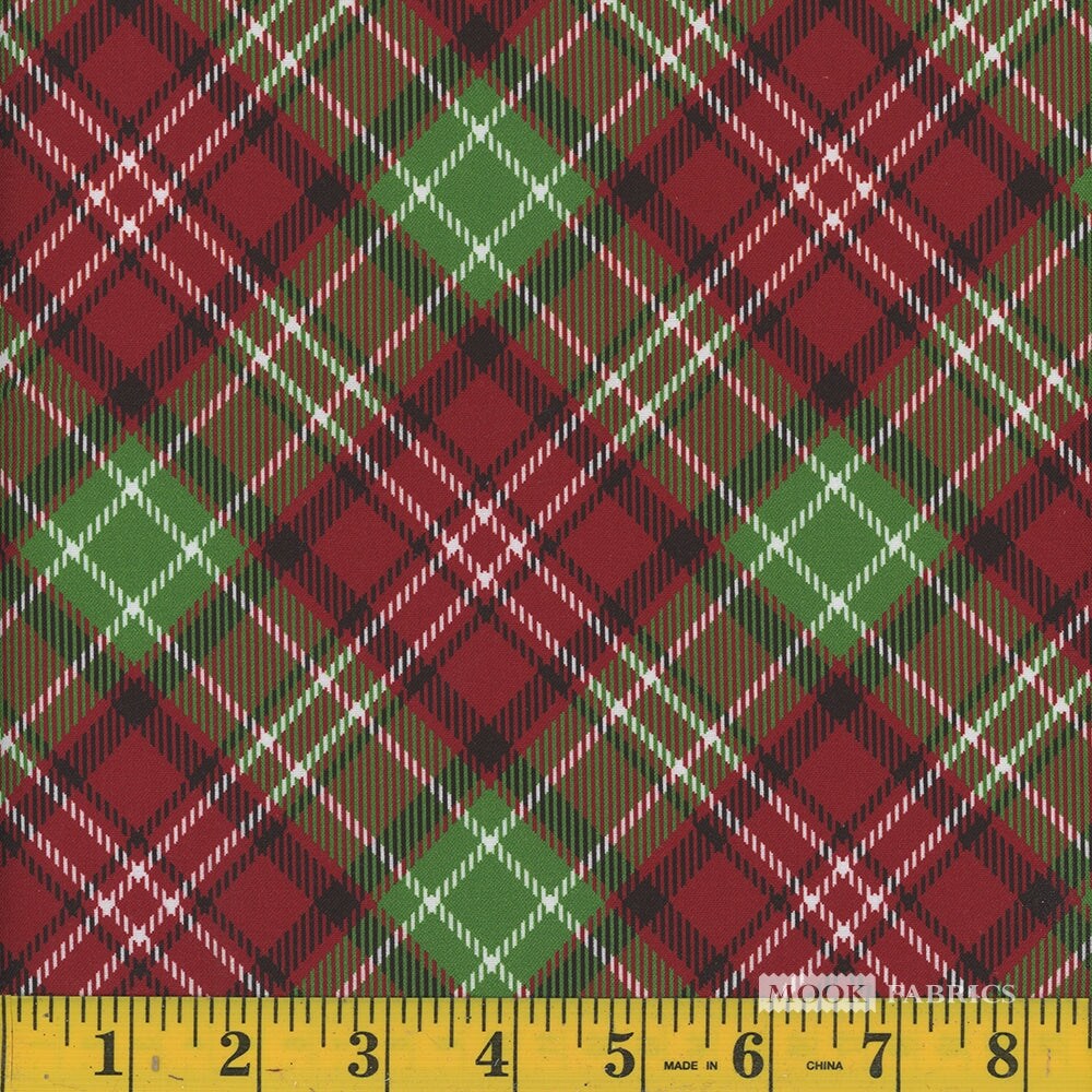 Mook Fabrics Christmas Diagonal Plaid Red Green 100% Cotton Fabric By the yard