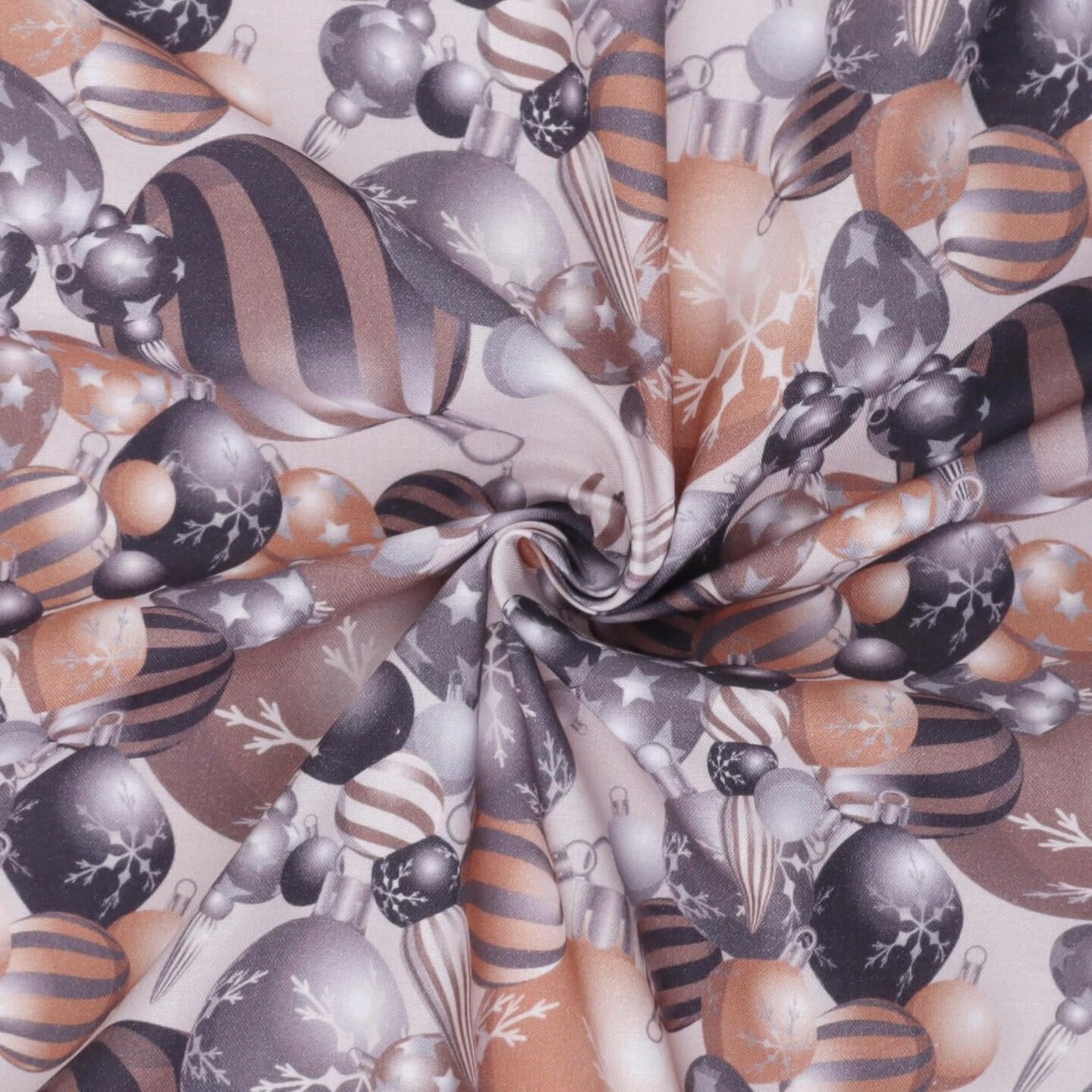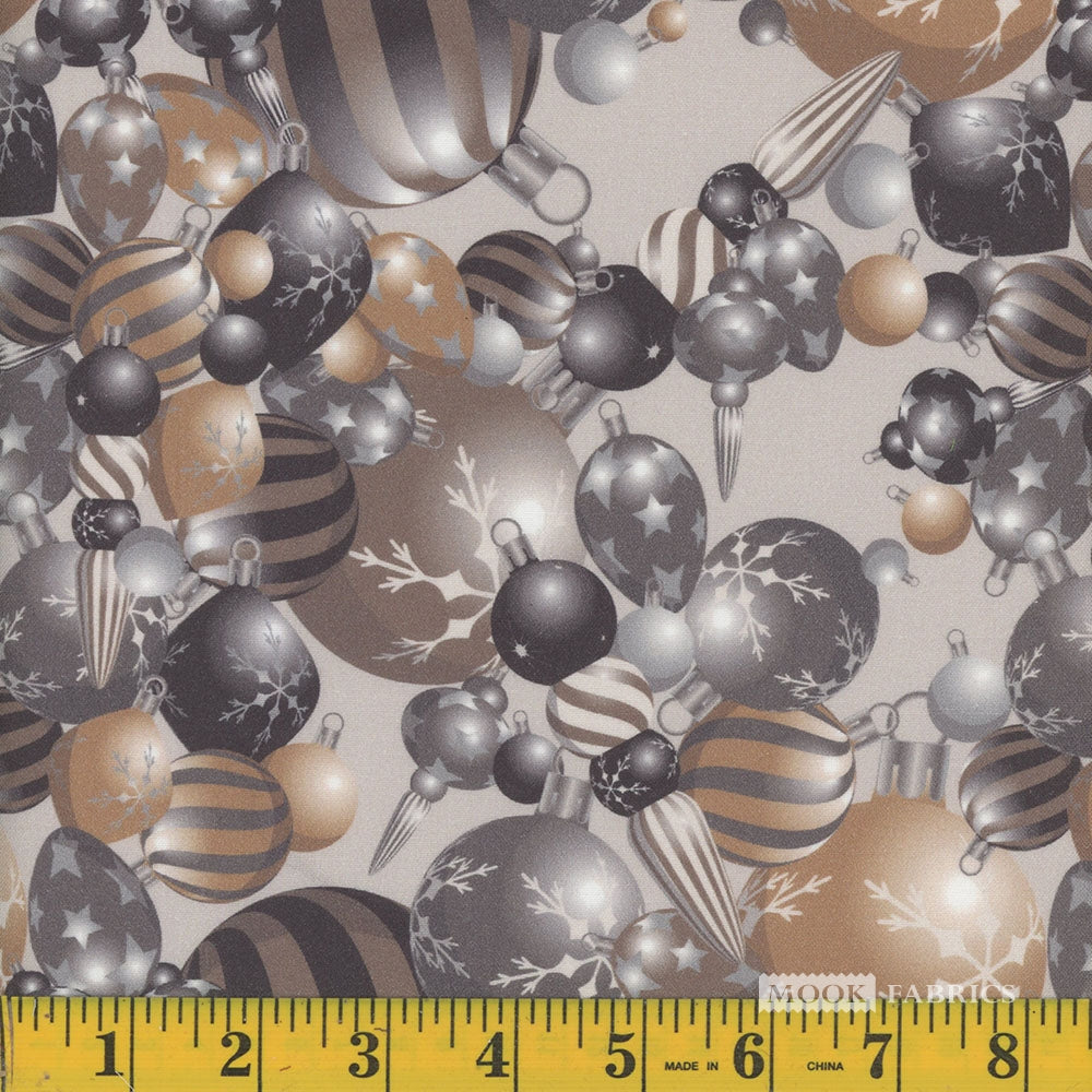 Mook Fabrics Christmas Ornaments Black Gold 100% Cotton Fabric By the yard