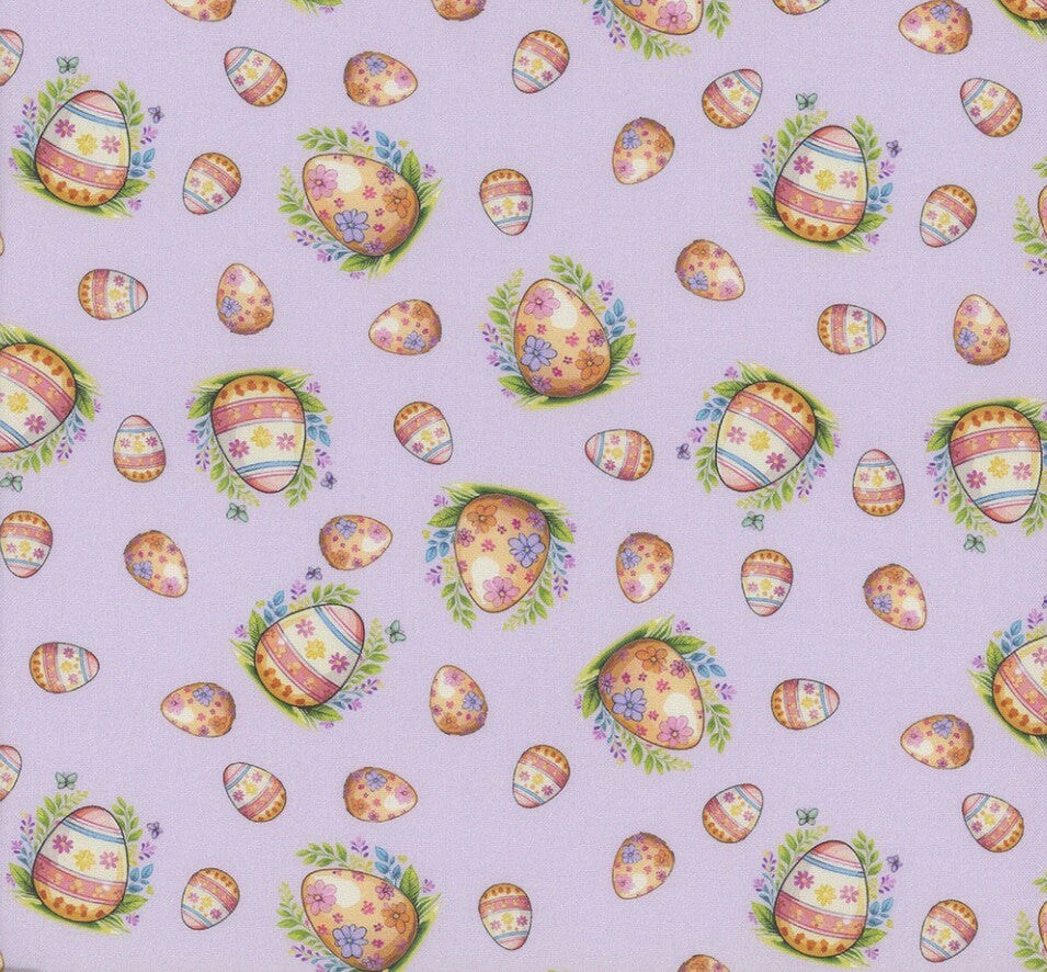 Mook Fabrics Hoppy Easter Eggs Lavender 100% Cotton Price per Yard