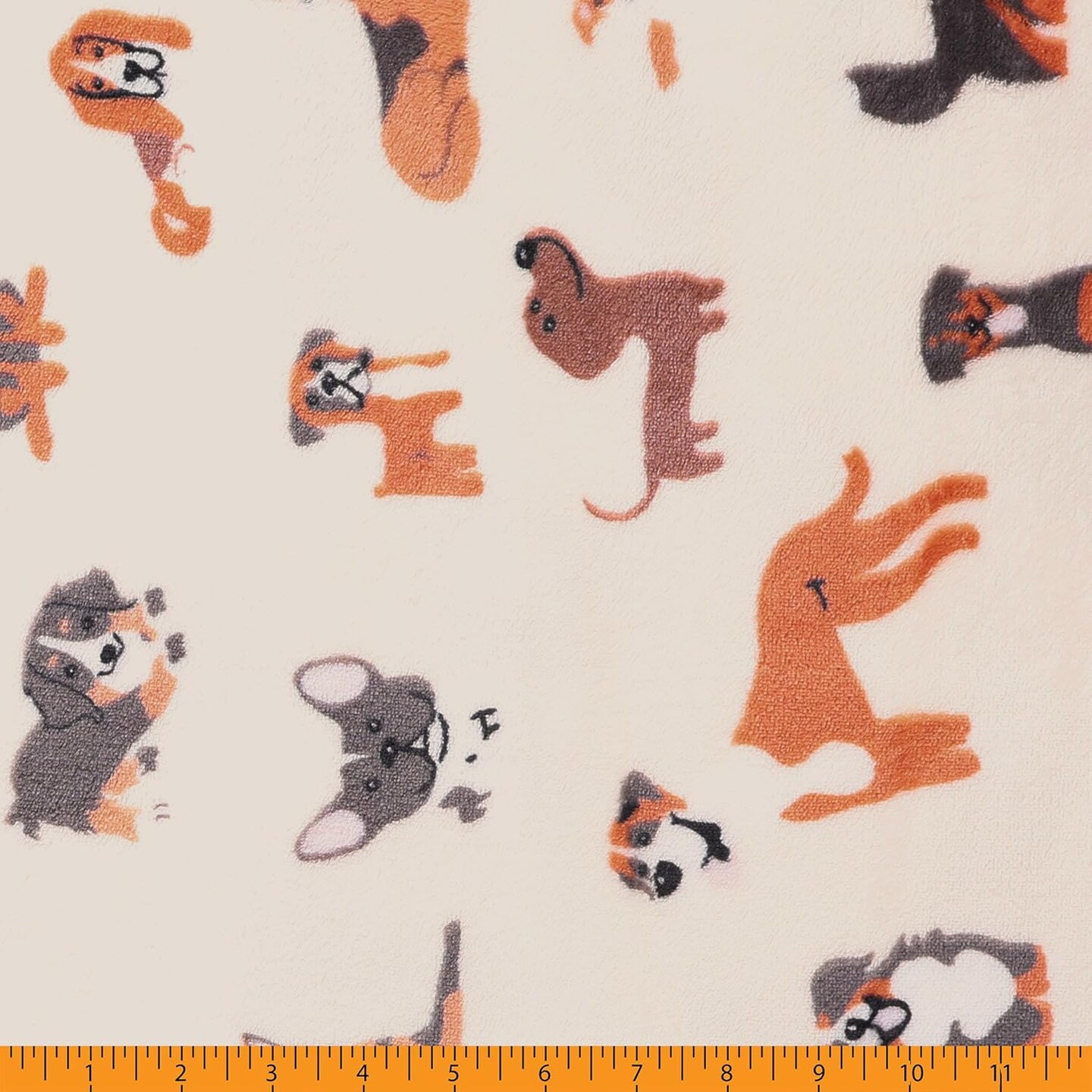 Mook Fabrics Resting Dogs Cream Super Soft Velour Fleece Fabric [60 in Wide] -By The Yard