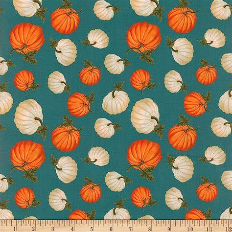 Mook Fabrics Thanksgiving Fall Autumn Tossed Pumpkins on Teal 100% Cotton Fabric By the yard