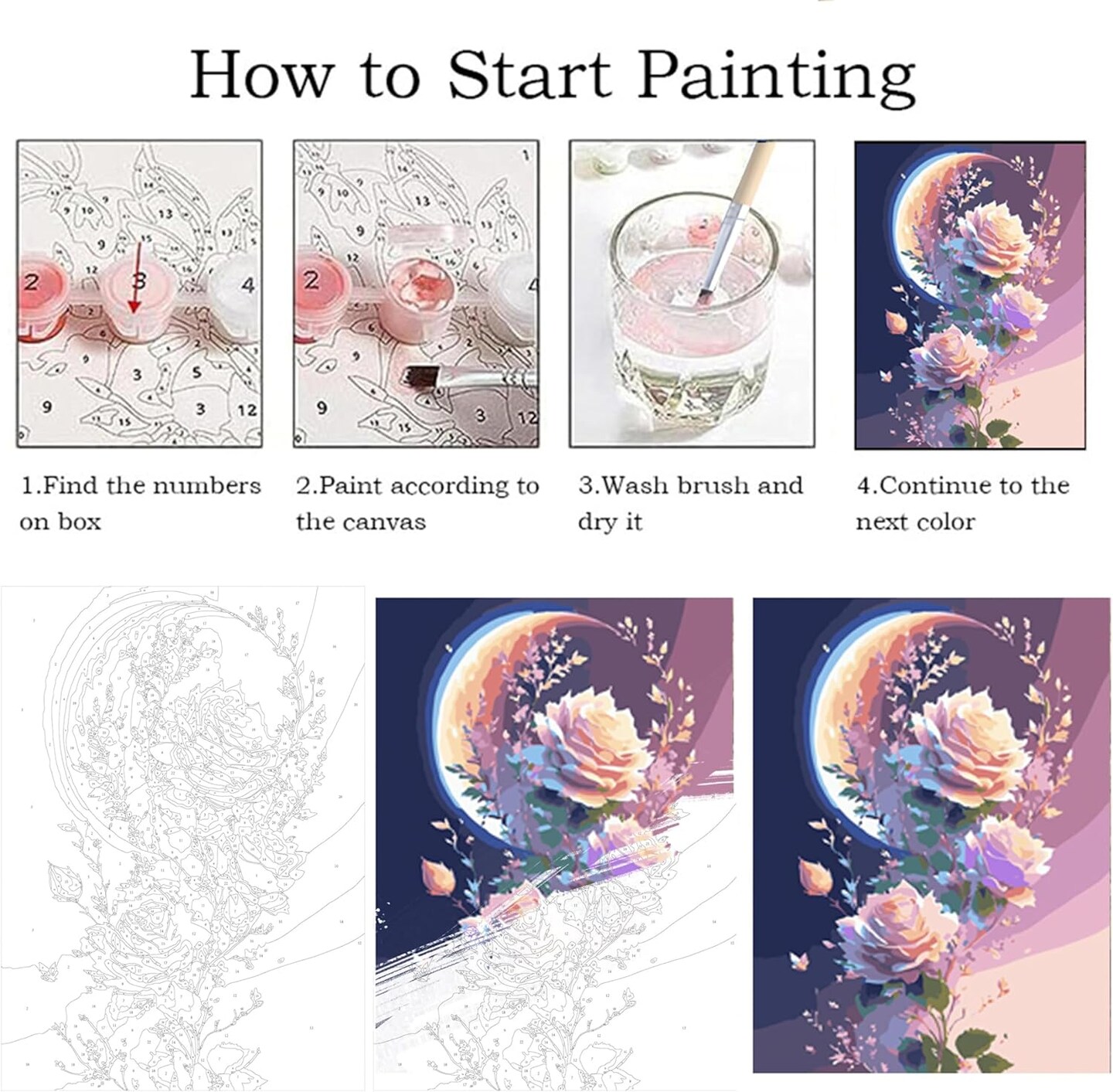 Moon Flowers Paint by Numbers for Adults Beginners