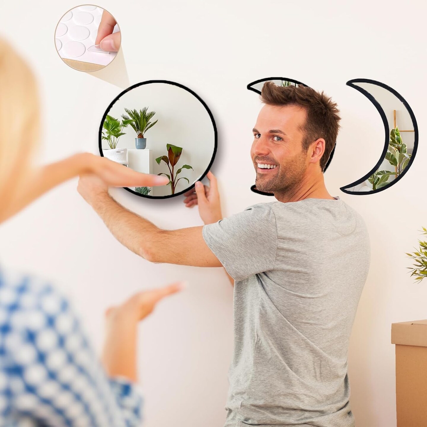 Moon Phase Mirror Set, 5pcs Boho Moon Wall Decor for Home