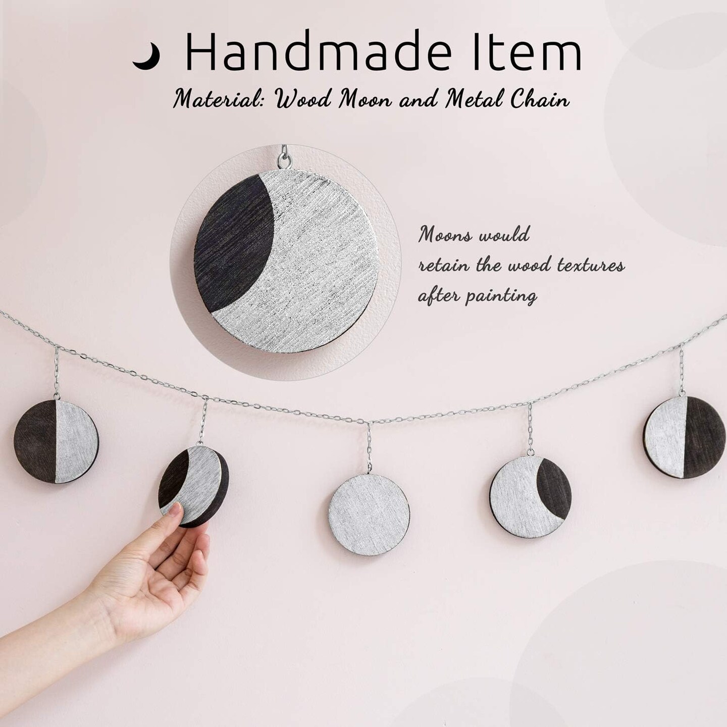 Moon Phase Wall Hanging Boho Home Decor Metal Garland(Silver)