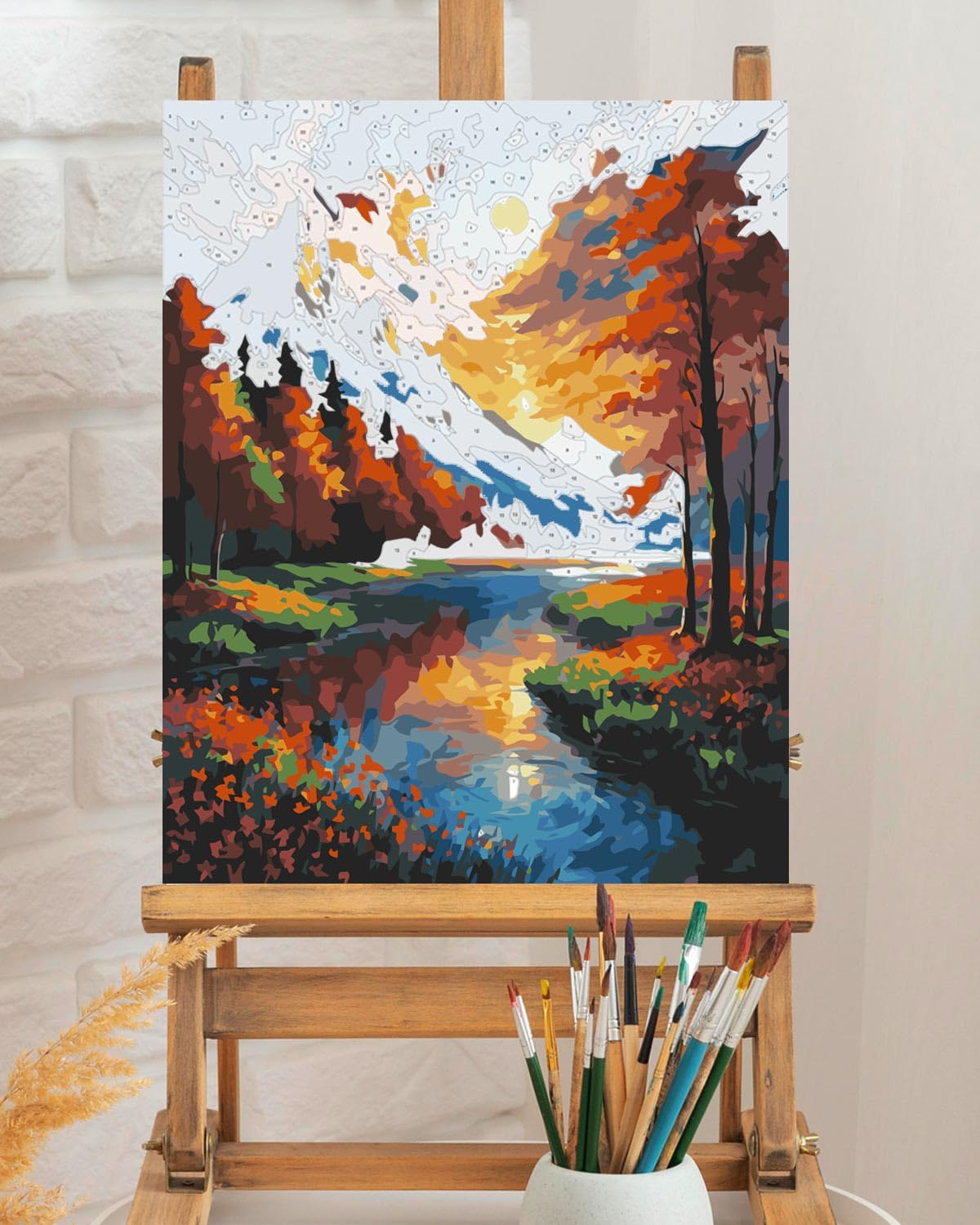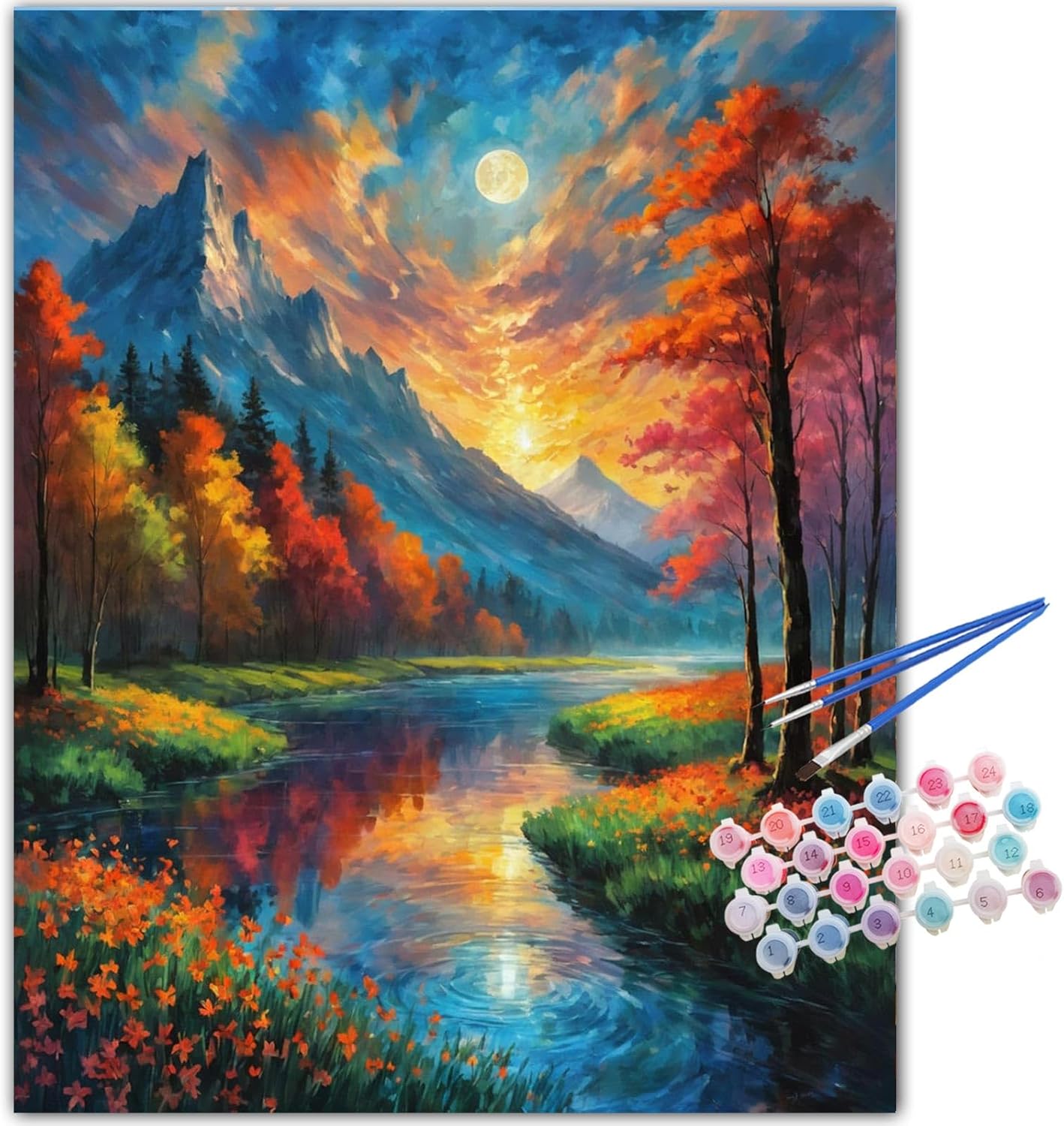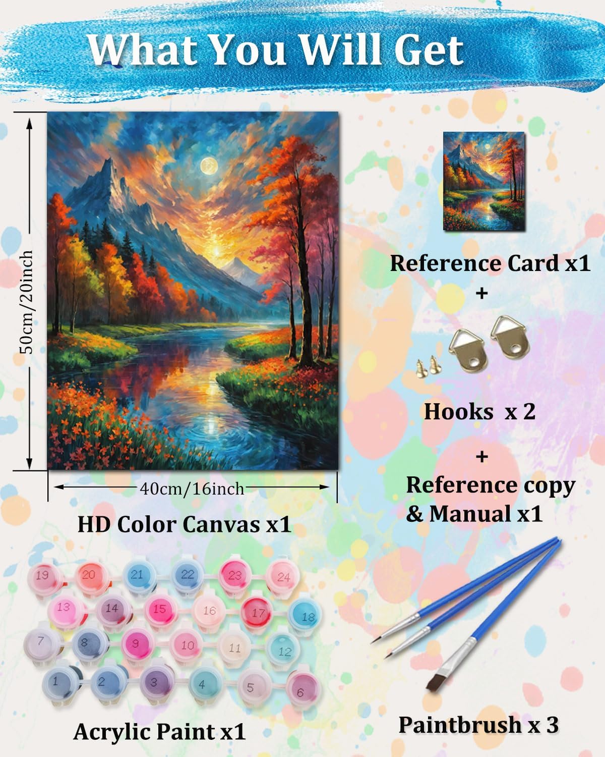 Moonlit River Paint by Numbers Kit for Adults,Mountains Adult Paint by Number Canvas,Adults' Paint-by-Number Kits Mountains Night 16x20inch (Without Framed)
