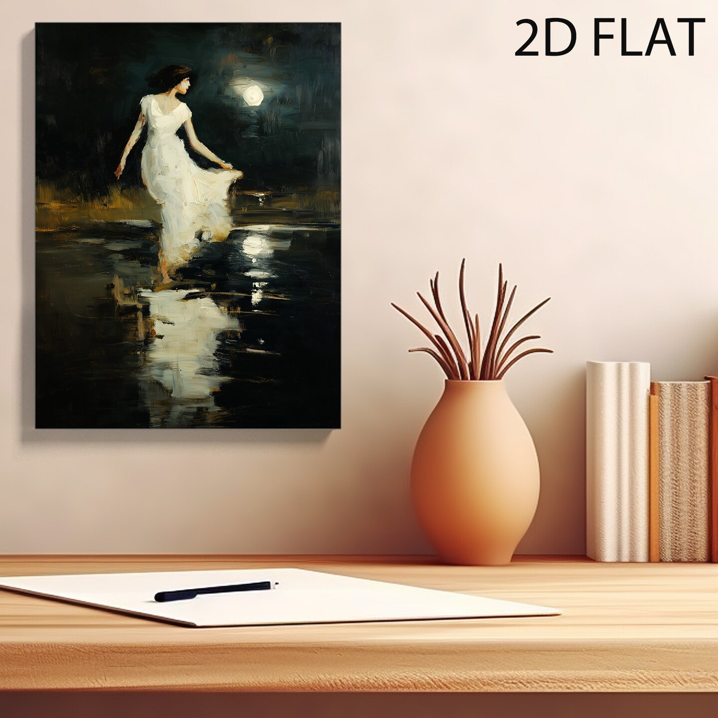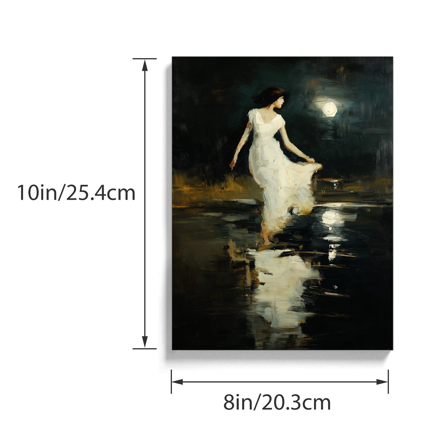 Moonlit Woman Canvas Wall Decor - Premium Pine Frame, Mortise - Tenon Joint & Non - Toxic Water - Based Ink | 8x10 Inches