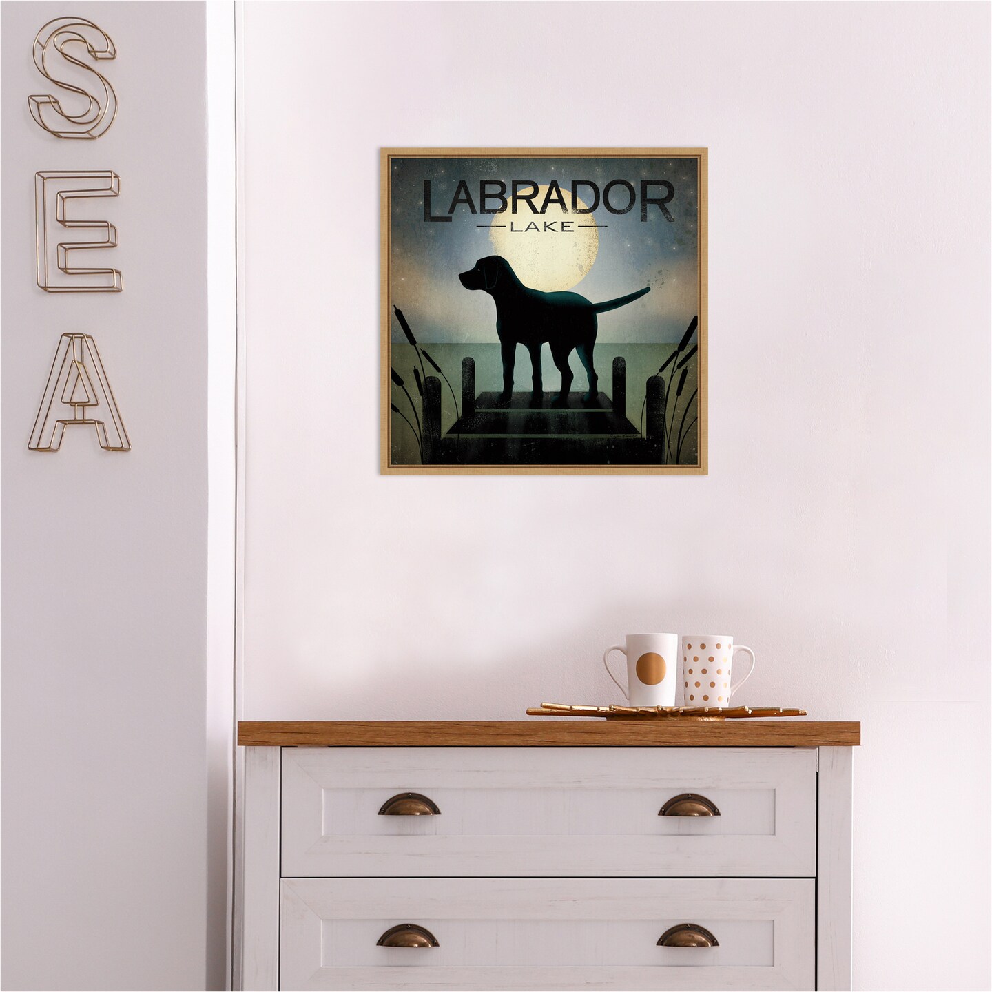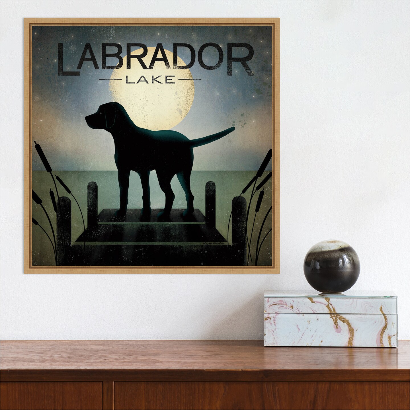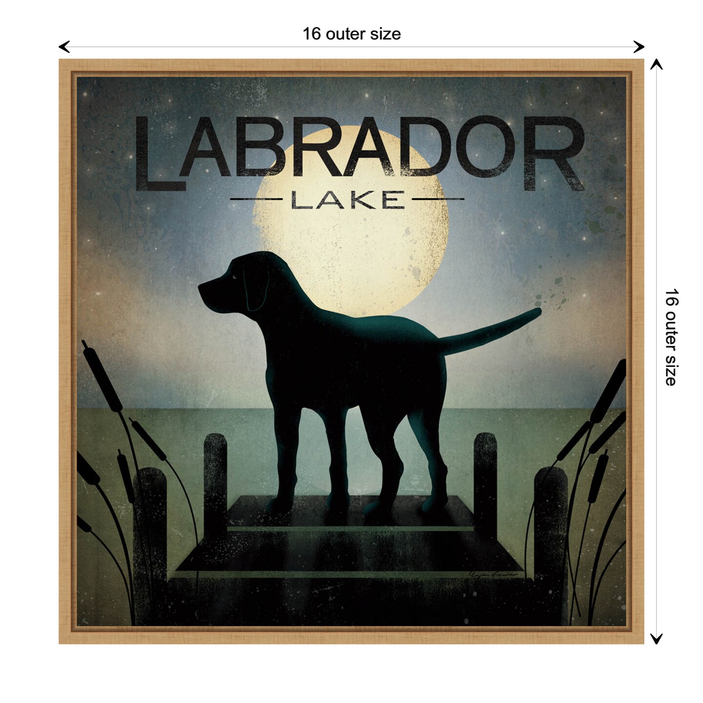 Moonrise Black Dog Labrador Lake by Ryan Fowler Canvas Wall Art Print Framed
