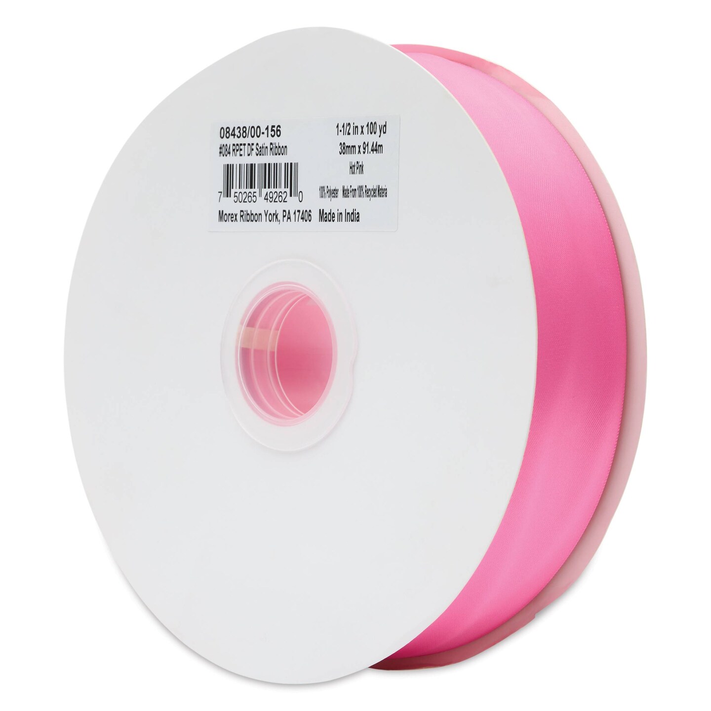 Morex Recycled Double Faced Satin Ribbon - Hot Pink, 1-1/2" x 100 yd