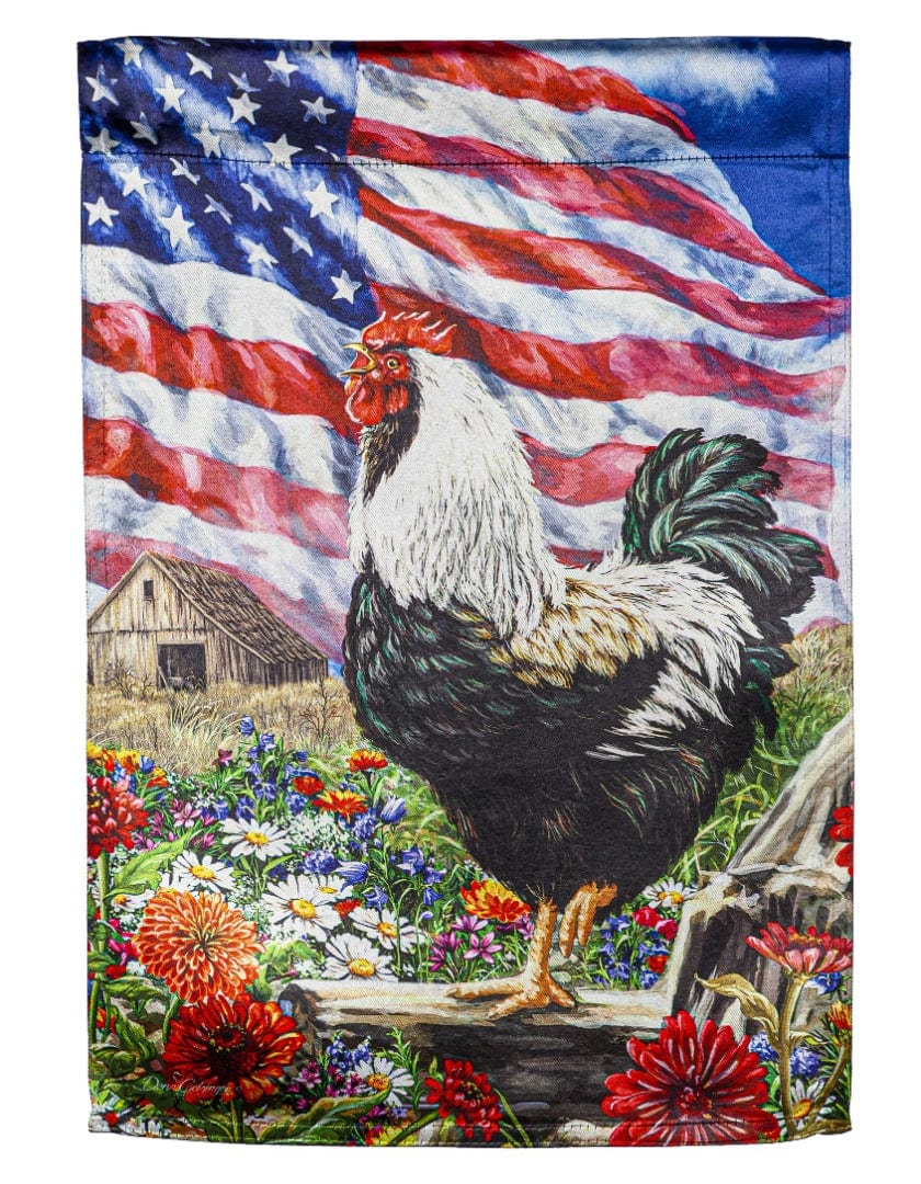 Morning In America Patriotic Garden Flag 2 Sided Rooster