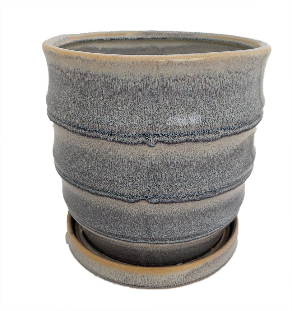 Morrocroft Ceramic Egg Pot with Attached Saucer - 5.25" x 5" - Storm Tiered