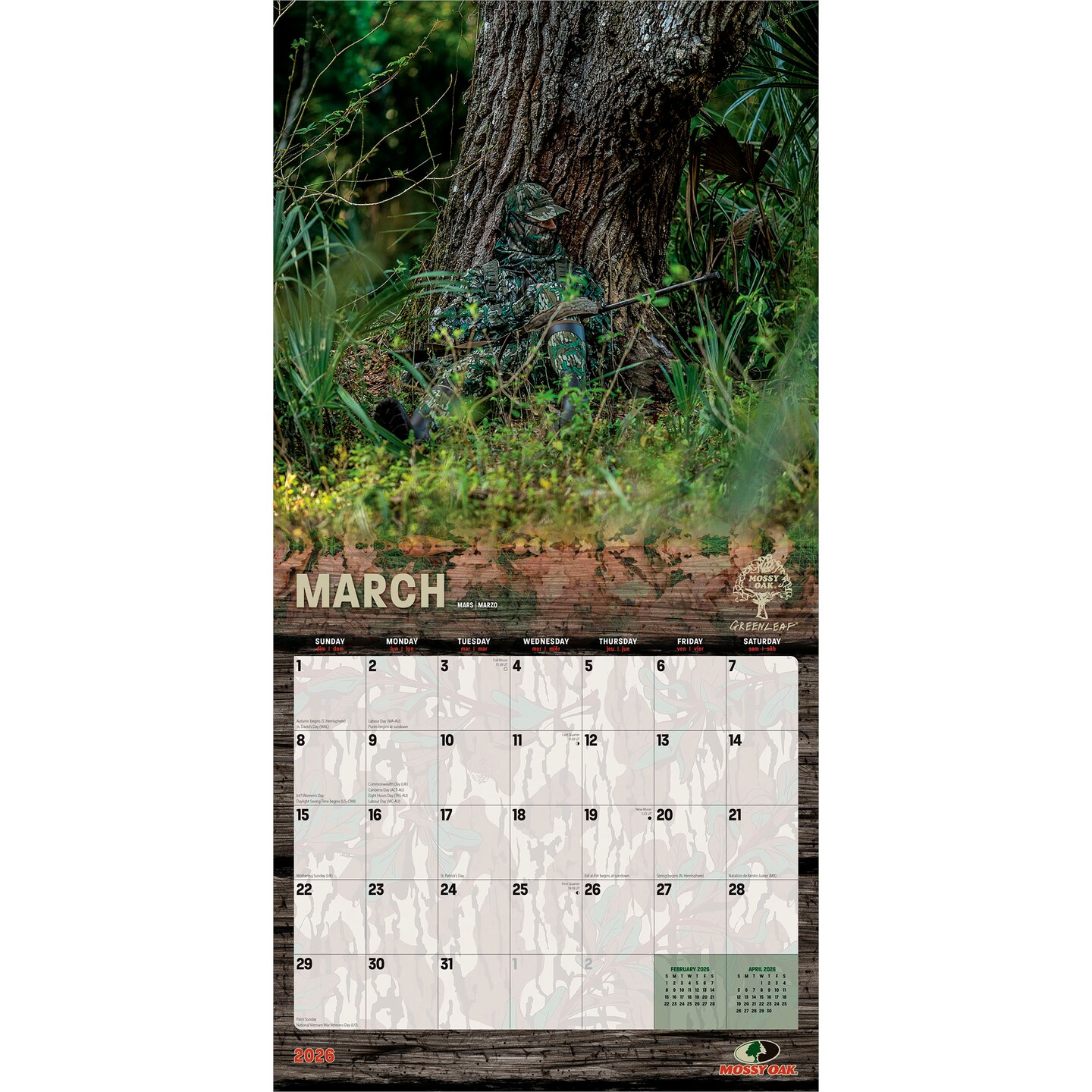 Mossy Oak American Camo OFFICIAL | 2026 12 x 24 Inch (Hanging) Monthly Square Wall Calendar | Plastic-Free