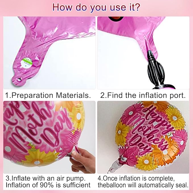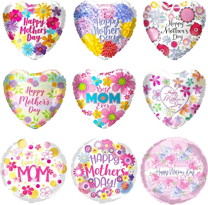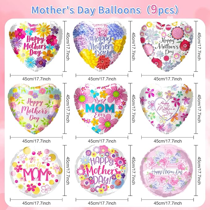 Mothers Day Balloons Kit 18'' Happy Mother’s Day Foil Balloons Flower Aluminum Balloons Set for Mothers Day Party Decoration Birthday Holiday Celebration Supplies (9Pcs)