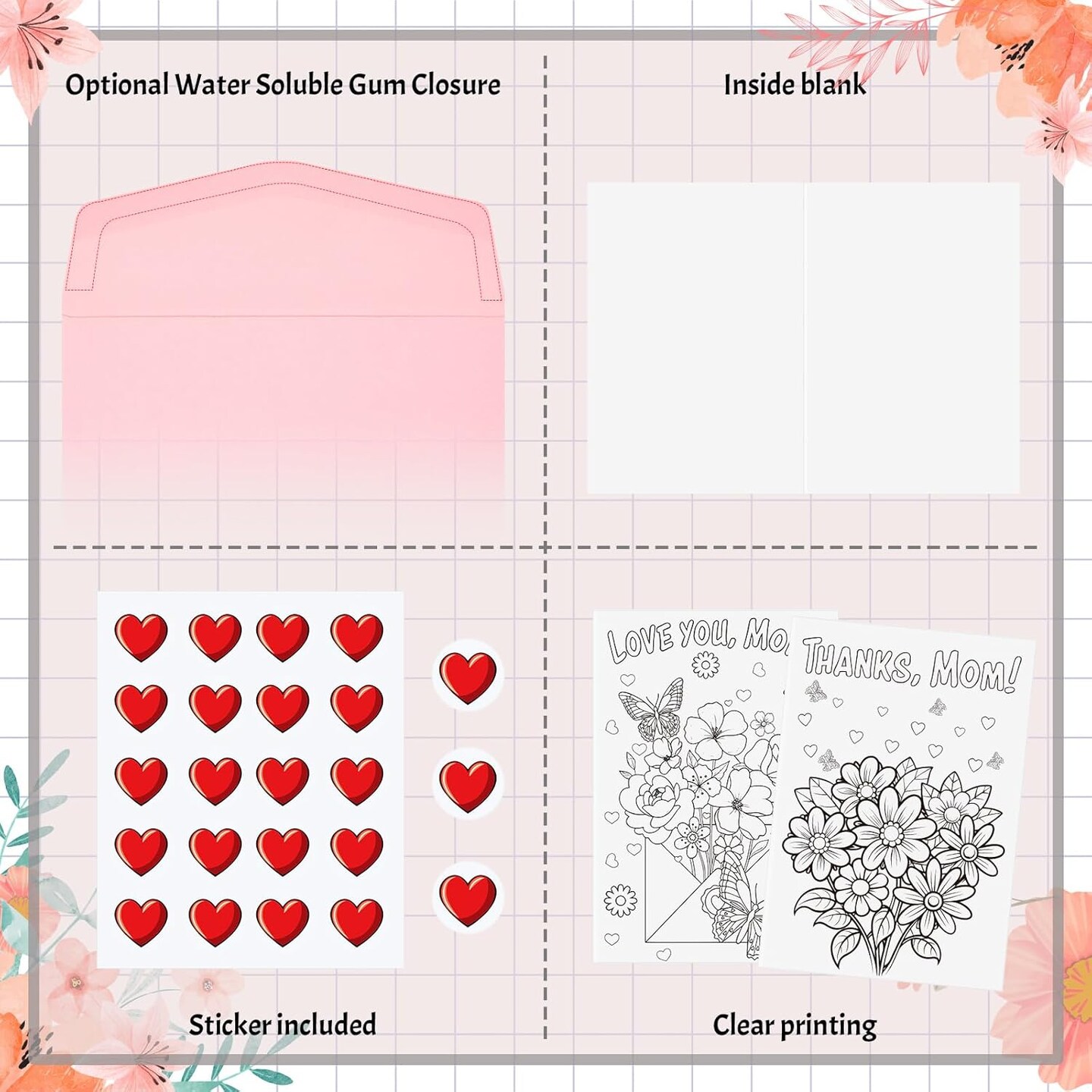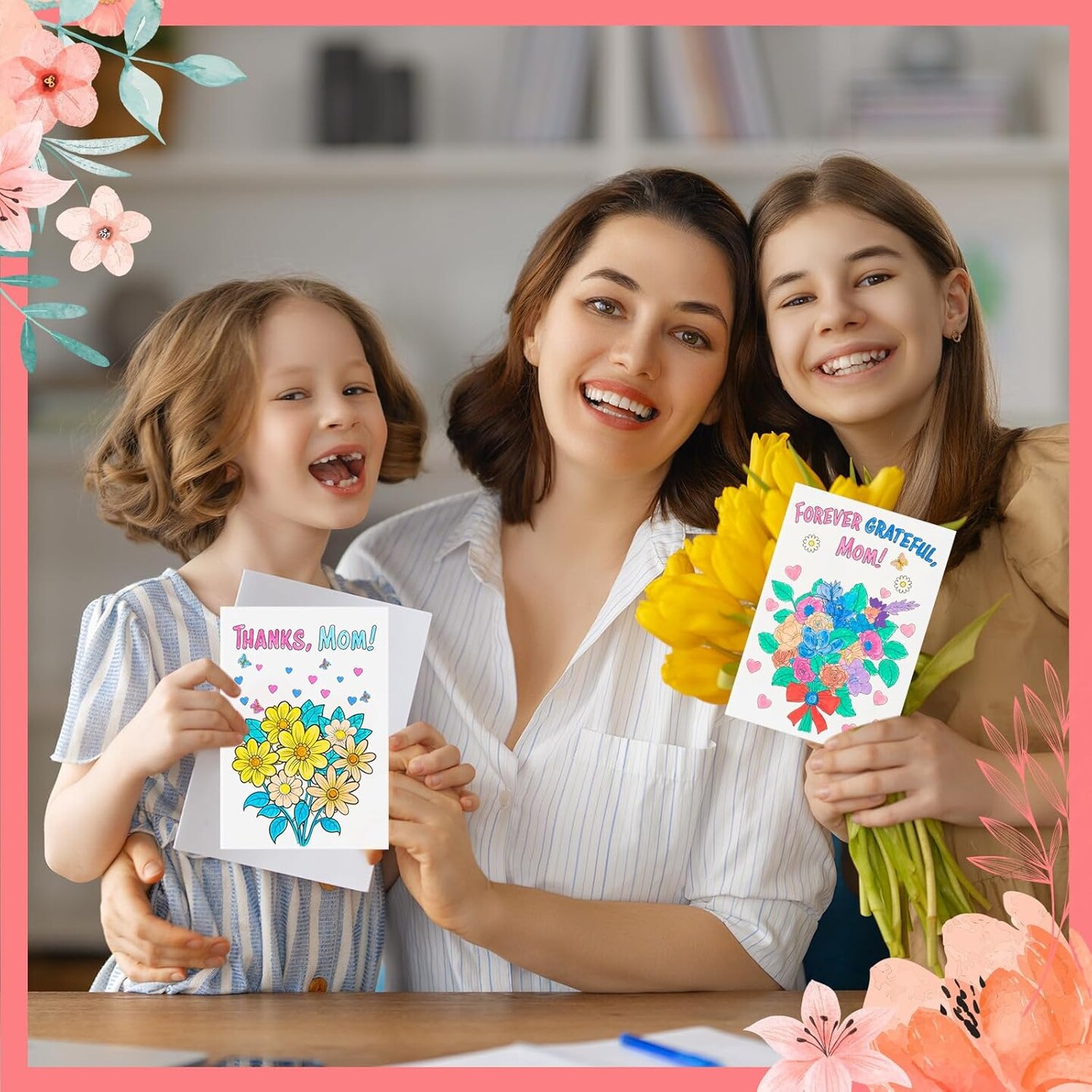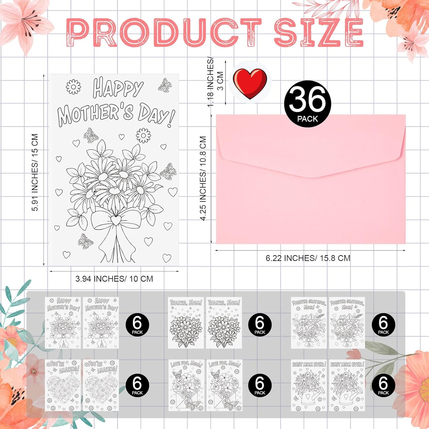Mother’s Day Card Making Coloring Kit – 36 Pcs Color Your Own Mother’s Day Greeting Cards with Envelopes & Stickers, DIY Bulk Cards for Kids Classroom Crafts Gifts for Mom