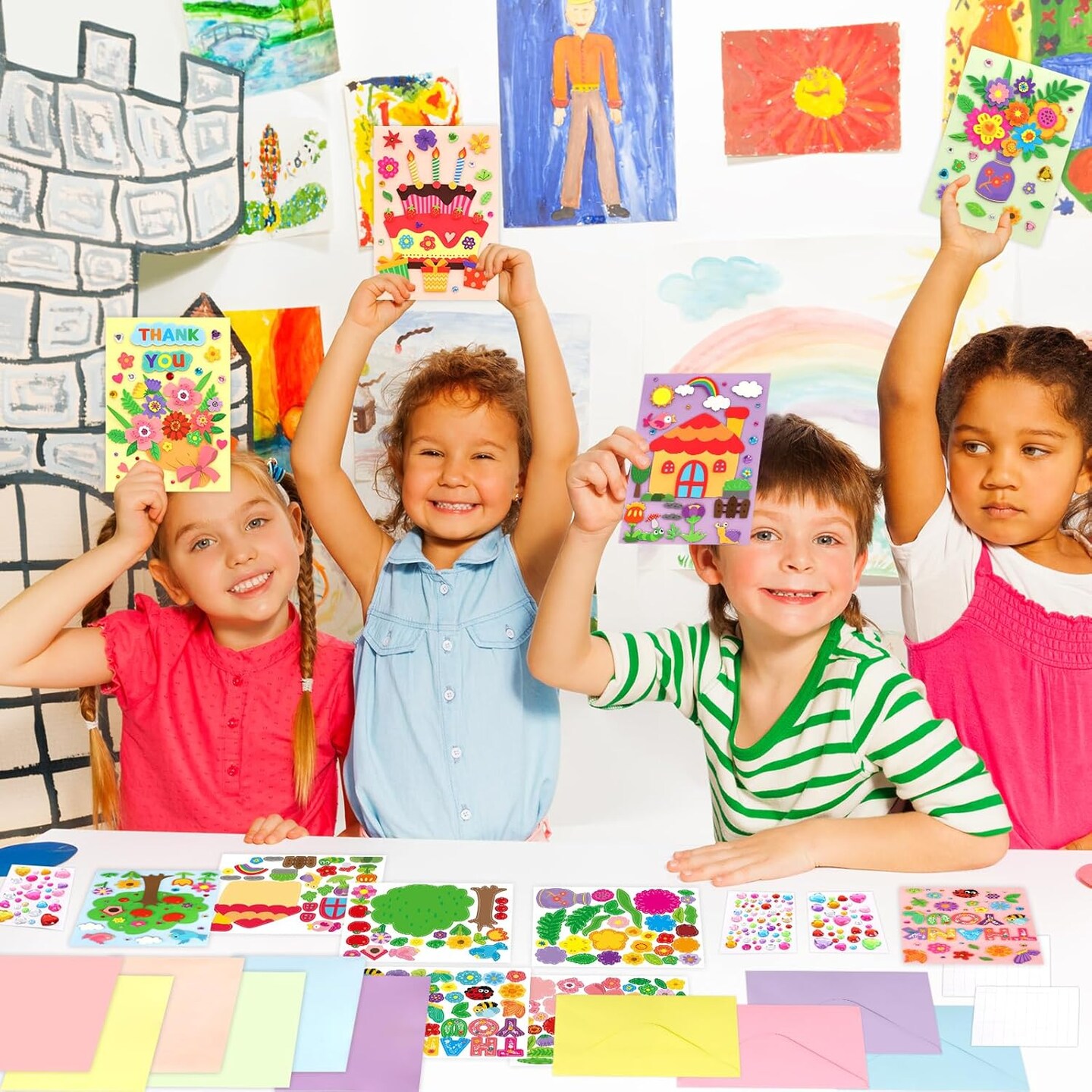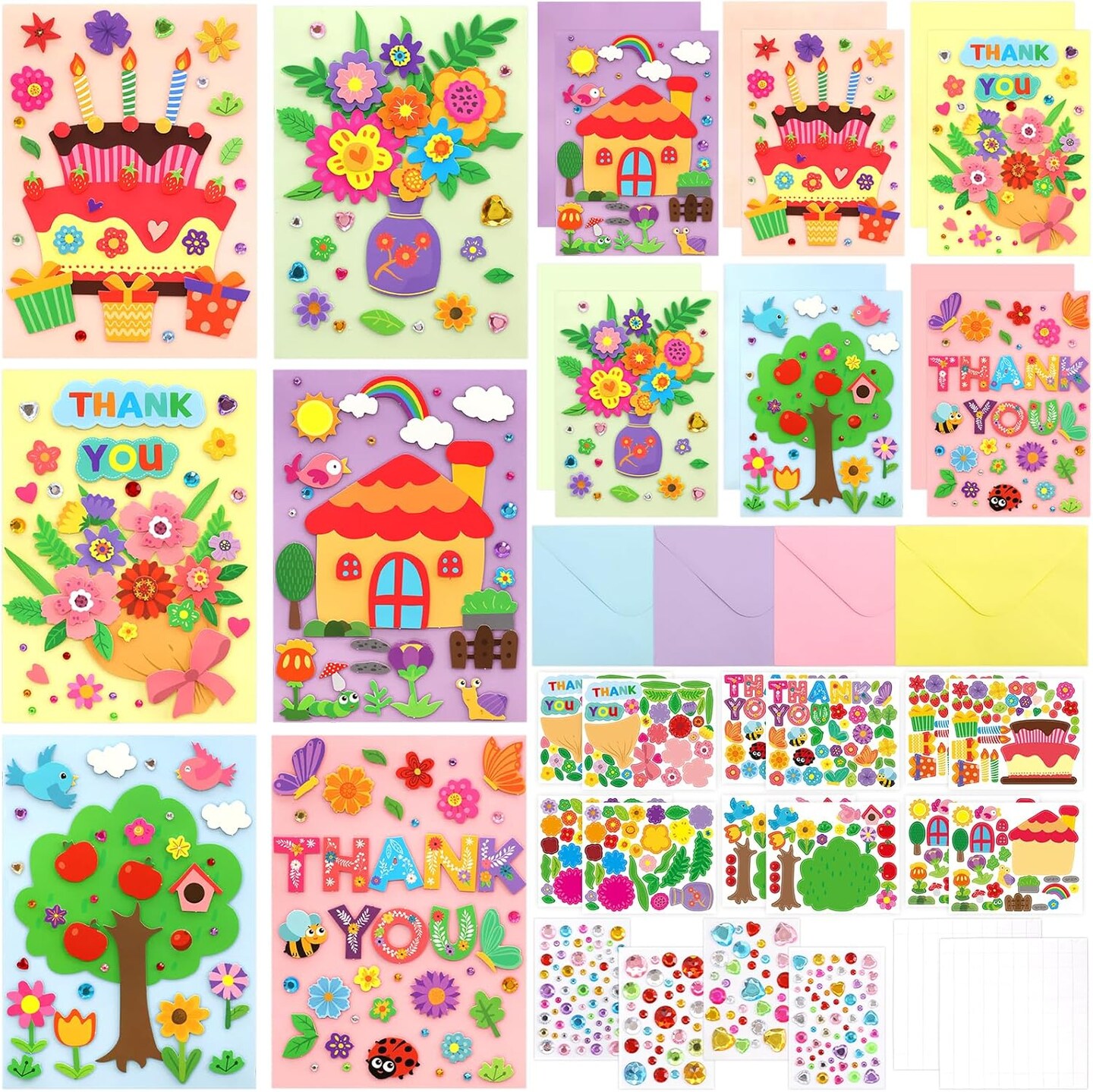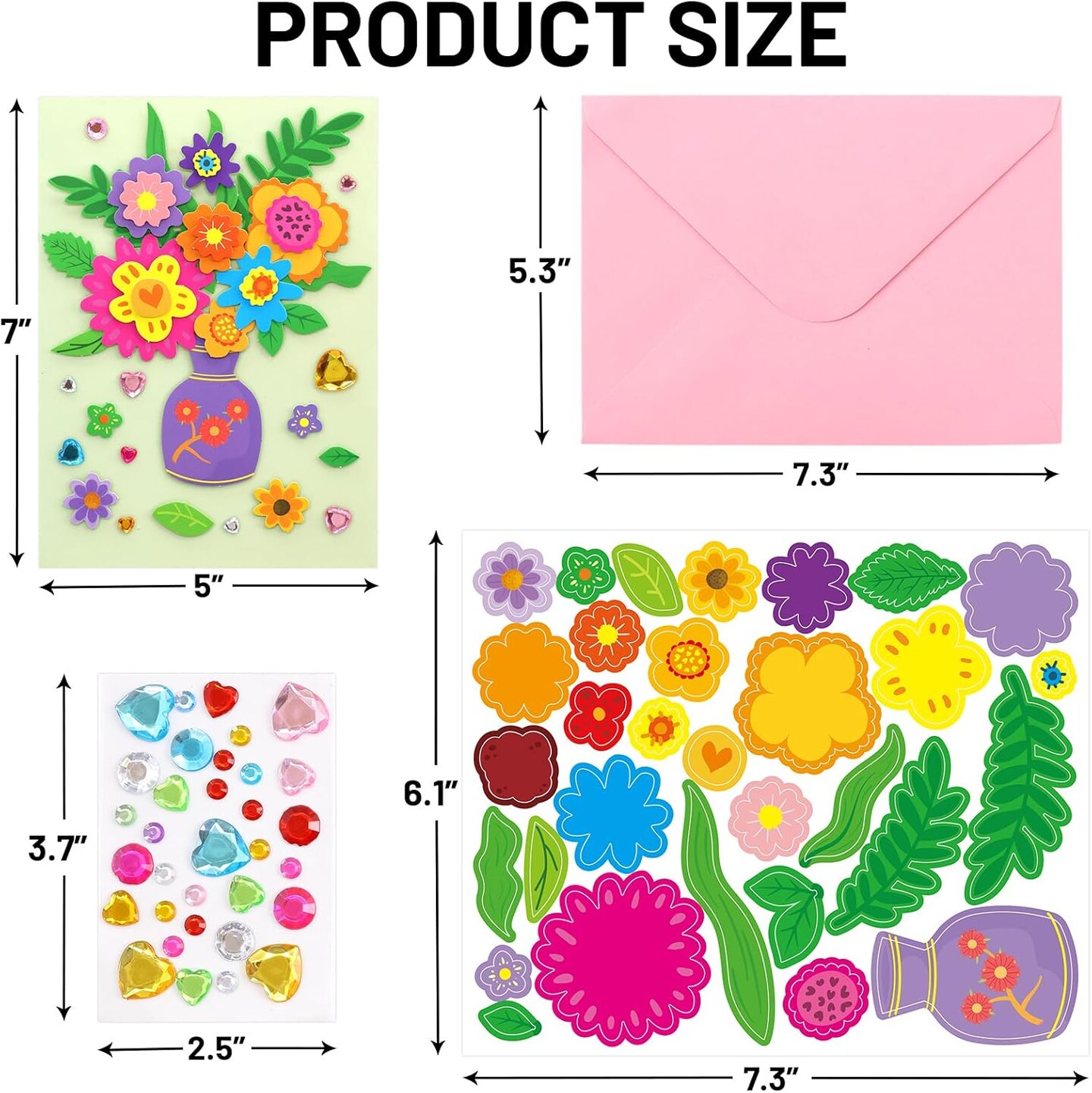 Mother’s Day Card Making DIY Kit for Kids – Handmade Greeting Card Craft Set with Envelopes, Stickers & Gem Decorations for Boys and Girls (12 PCS)