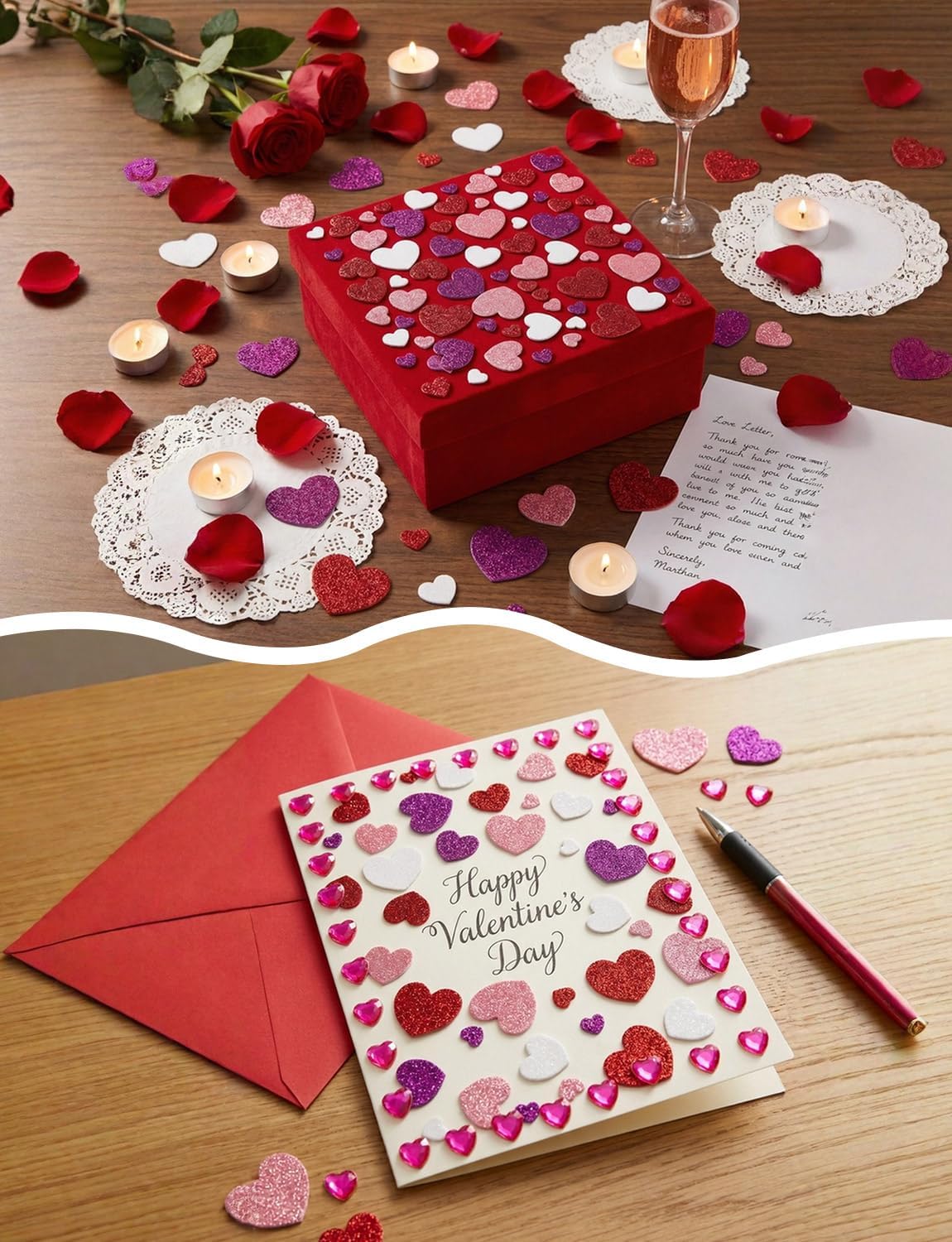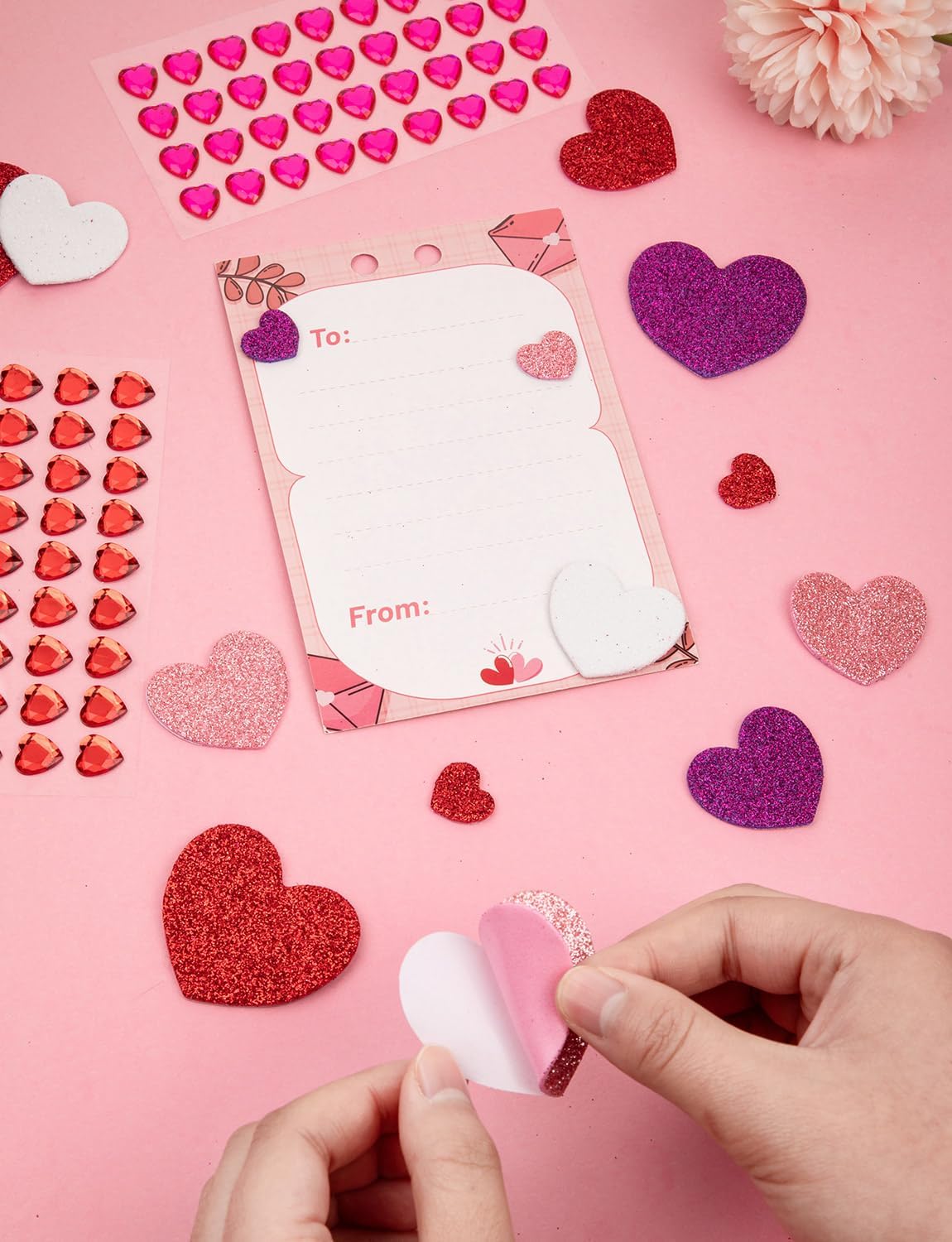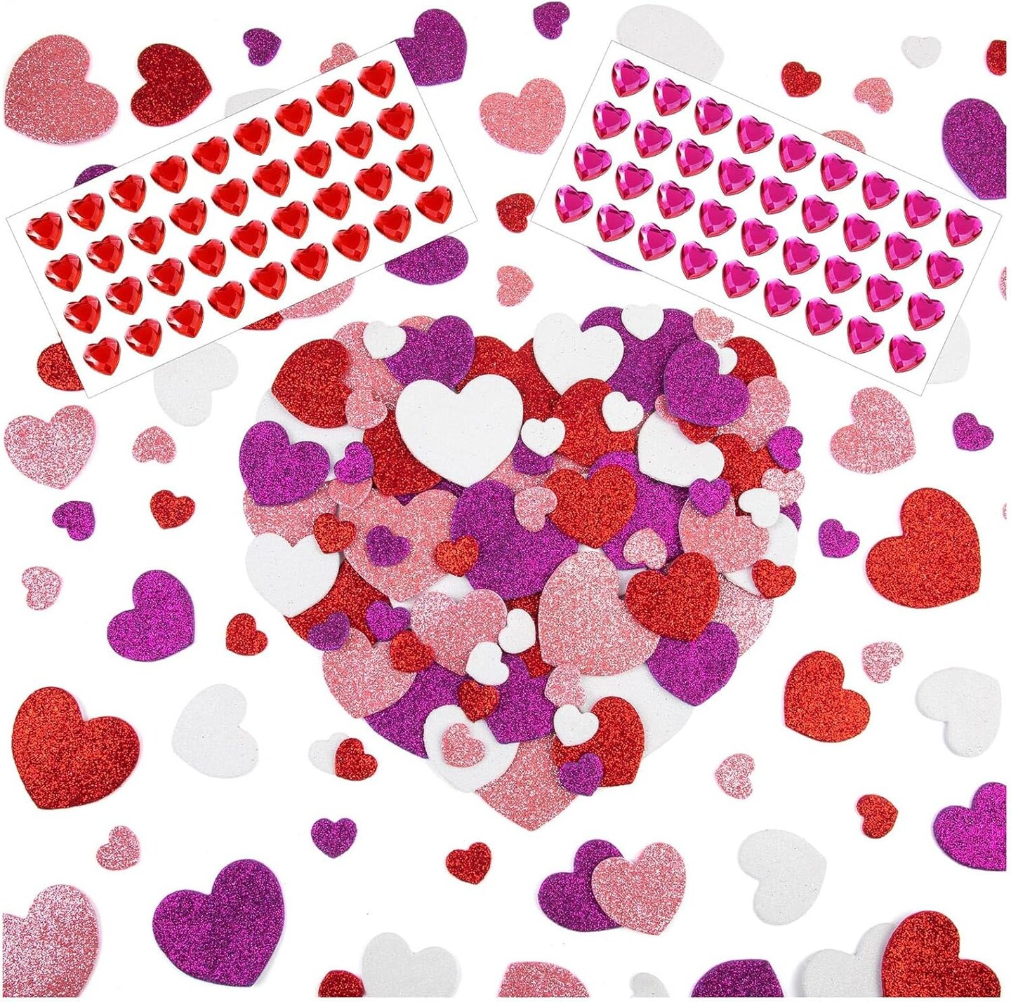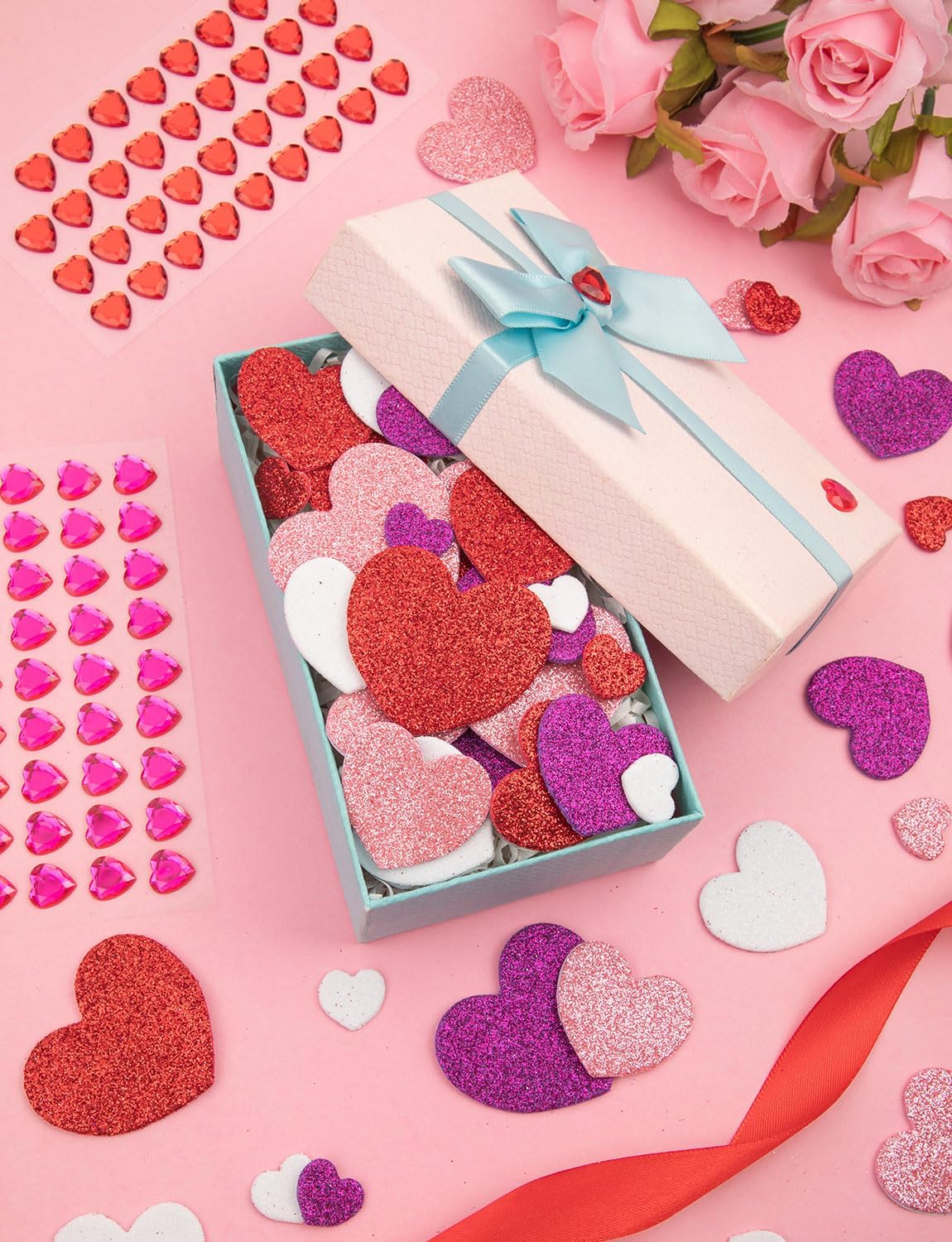 Mother’s Day Card Making Heart Foam Stickers & Gems Set – 272PCS Self-Adhesive DIY Craft Hearts for Greeting Cards, Scrapbooking, Classroom & Party Decorations