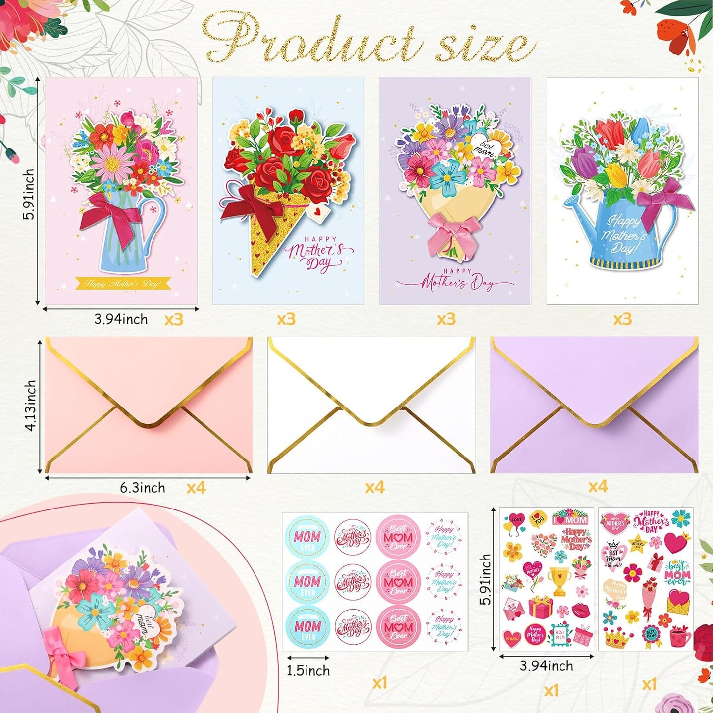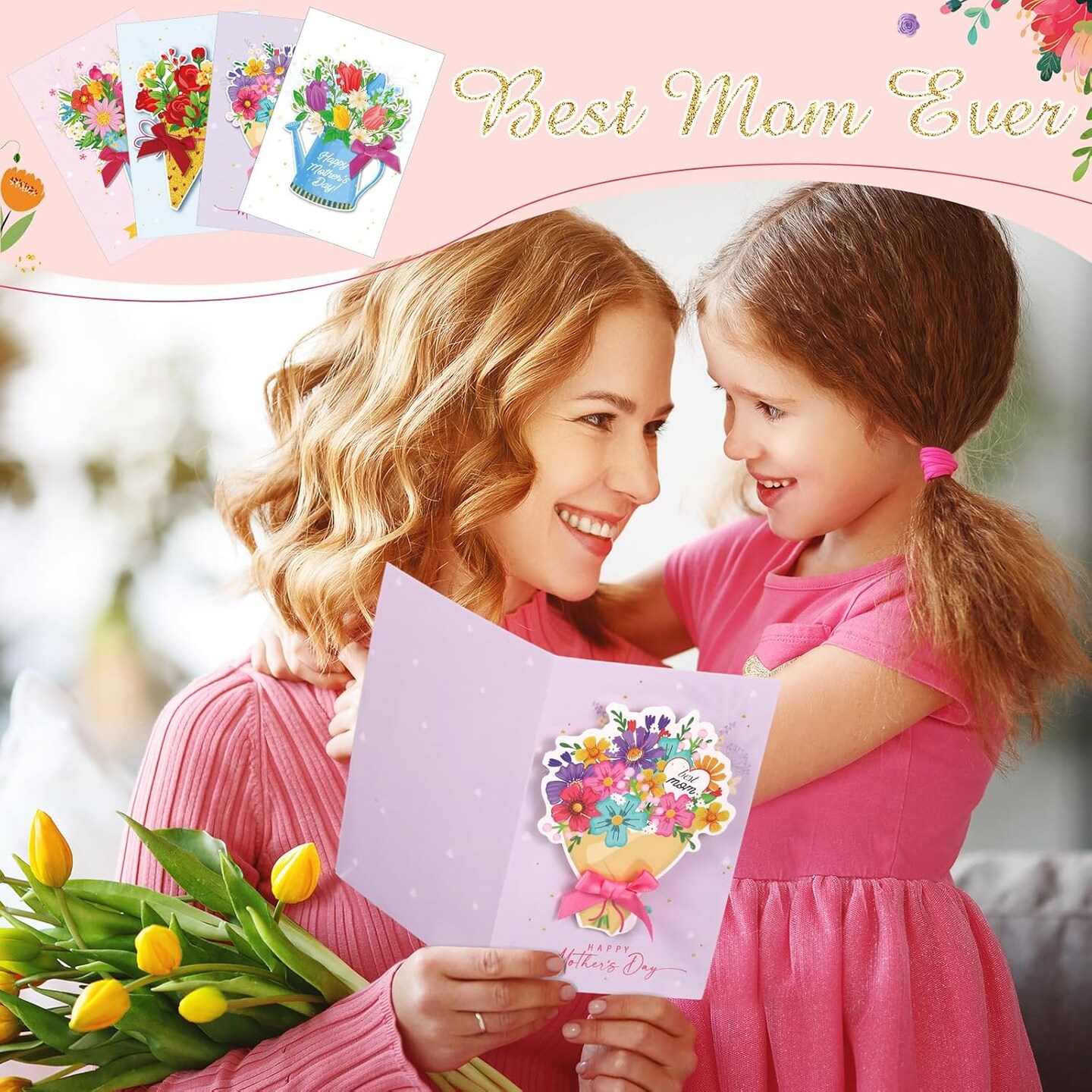 Mother’s Day Card Making Kit – 12 Pack 3D Flower Bouquet Greeting Cards with Envelopes, Stickers & Ribbons, Handmade DIY Cards for Mom, Wife, Daughter & Friends