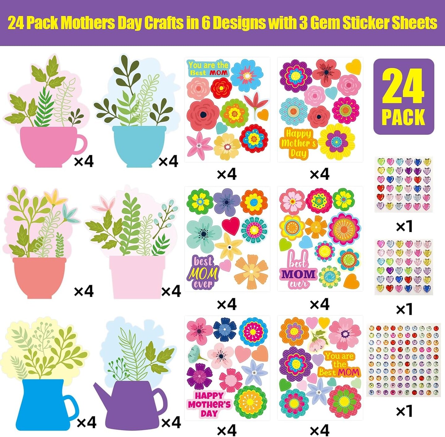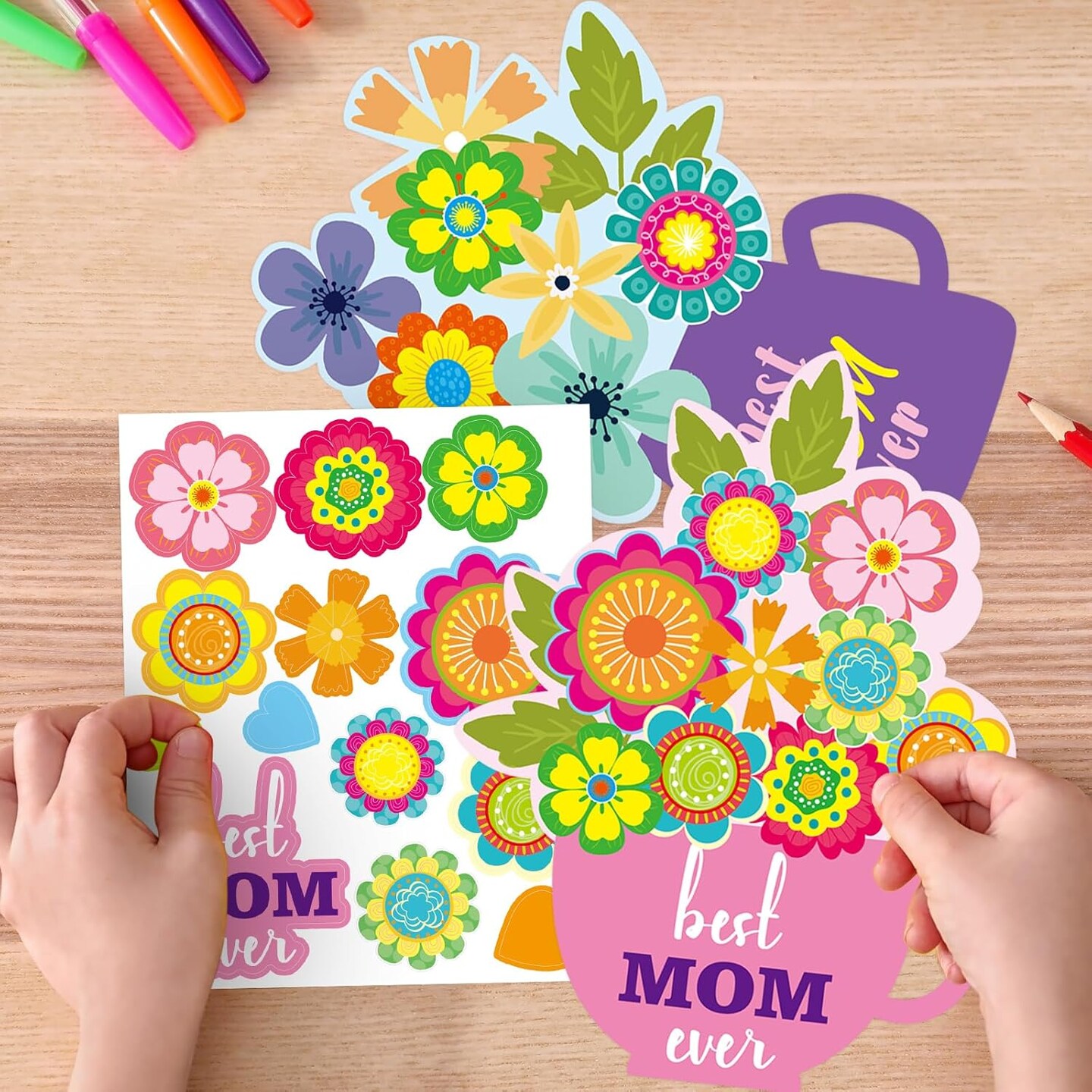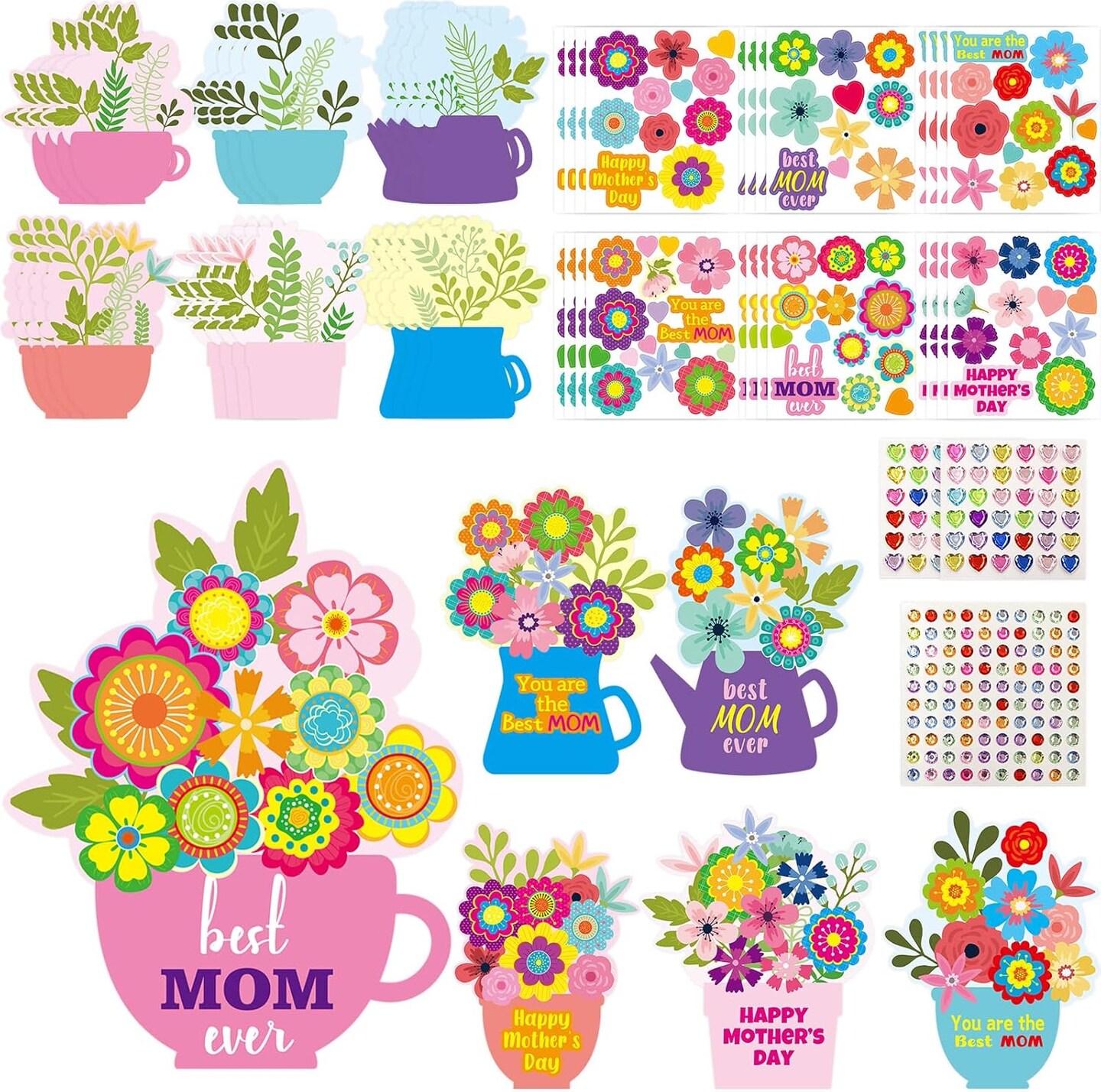 Mother’s Day Card Making Kit – 24 DIY Flower Craft Cards with Stickers, Handmade Greeting Card Set for Kids, Classroom & Home Activities