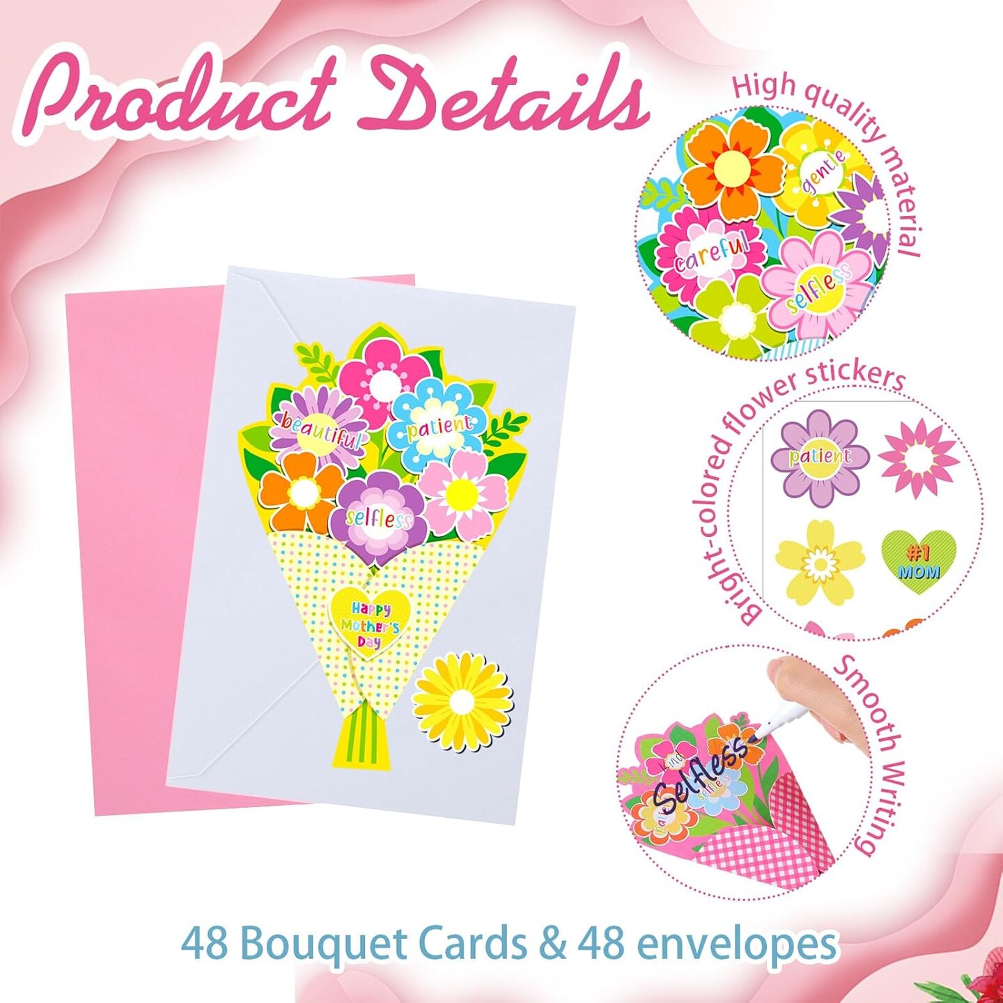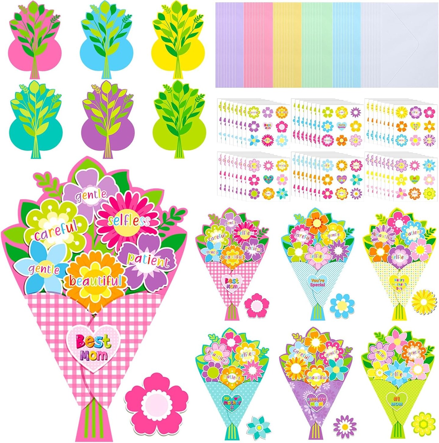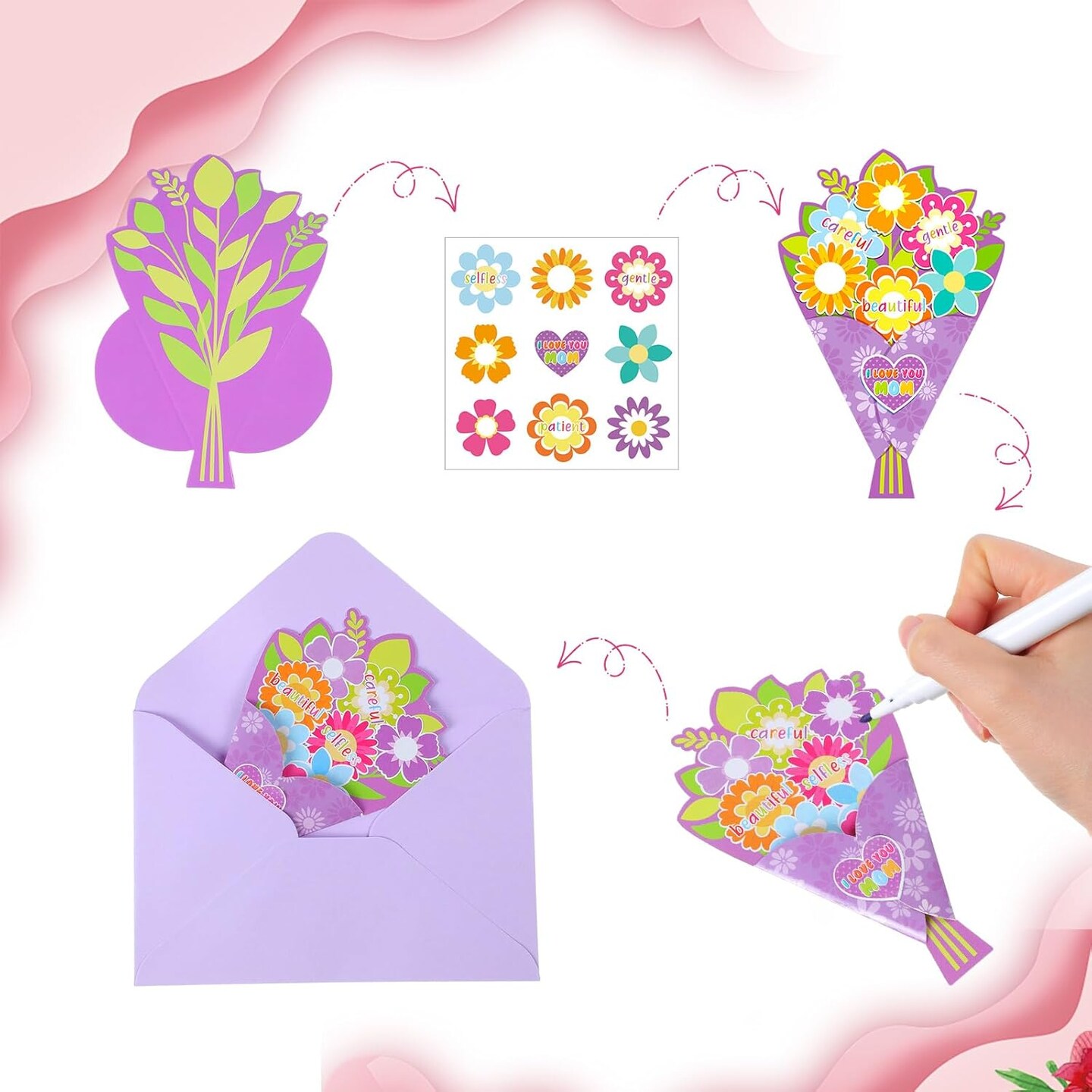 Mother’s Day Card Making Kit – 48 Sets DIY Bouquet Greeting Cards with Envelopes & Flower Stickers, I Love You Mom Craft Kit for Home, Office, and Birthday Gifts