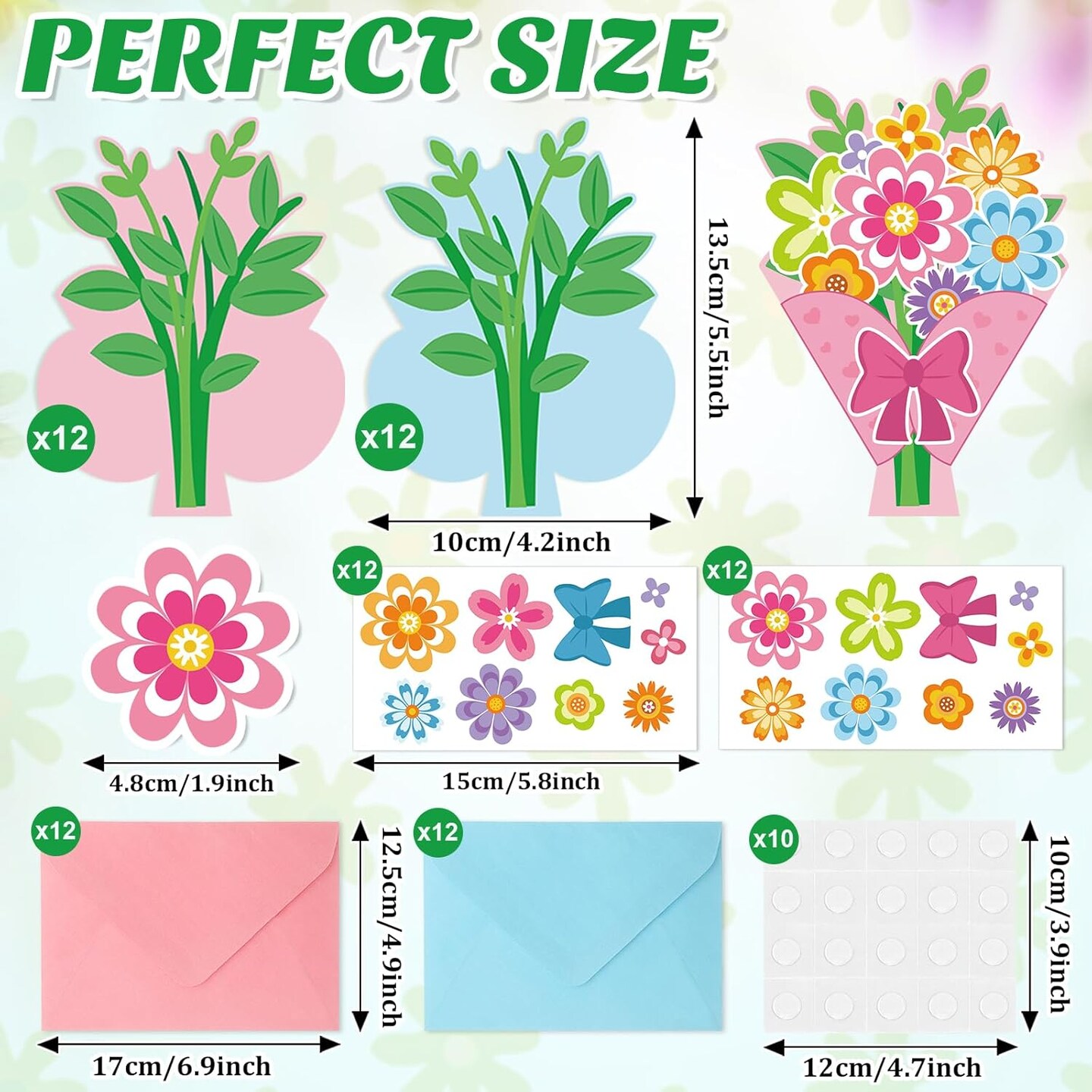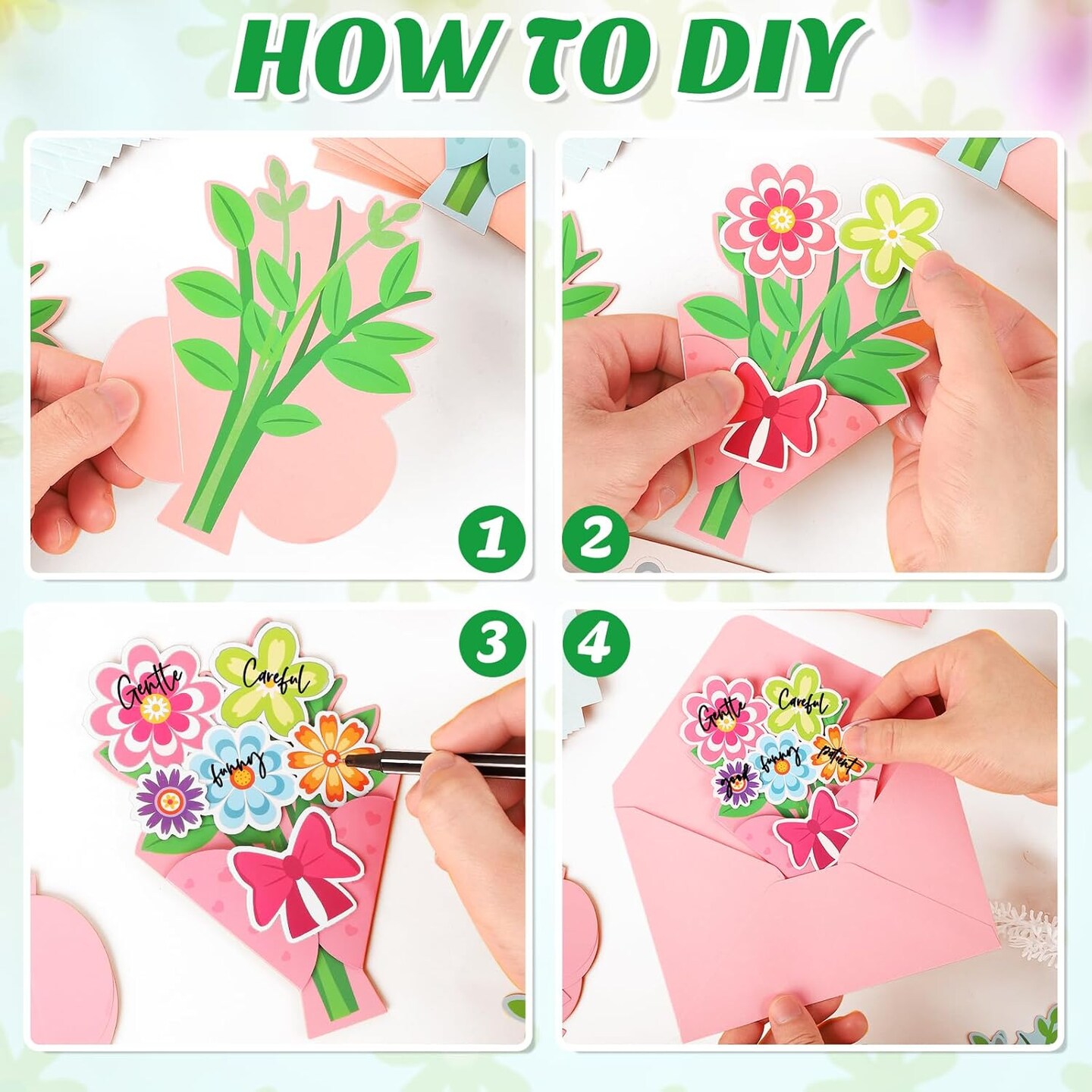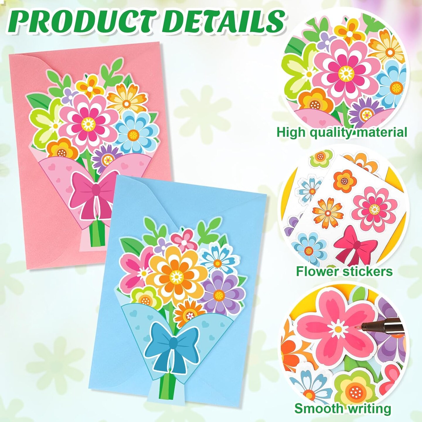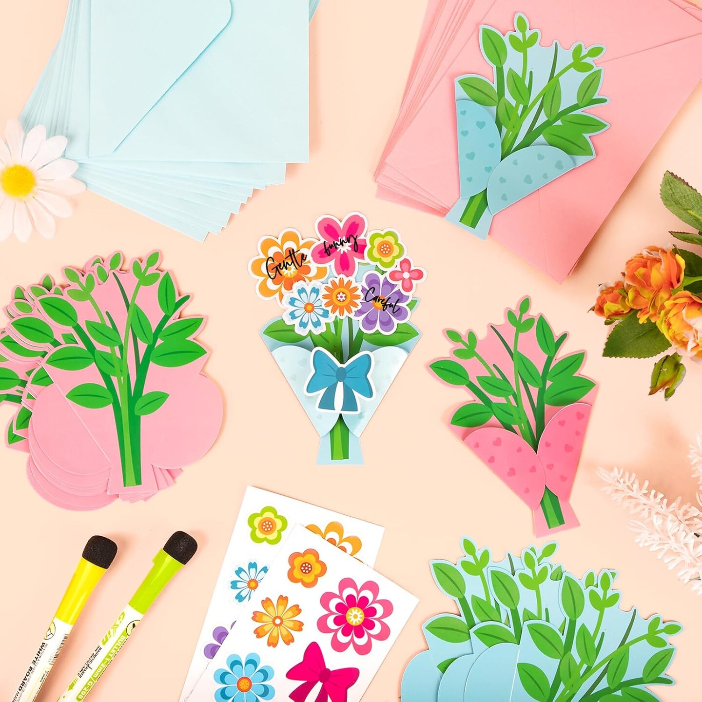 Mother’s Day Card Making Kit for Kids – 24 Sets DIY Flower Bouquet Greeting Cards with Envelopes, Stickers & Glue Dots, Handmade Classroom Craft Gifts for Mom (Bouquet)