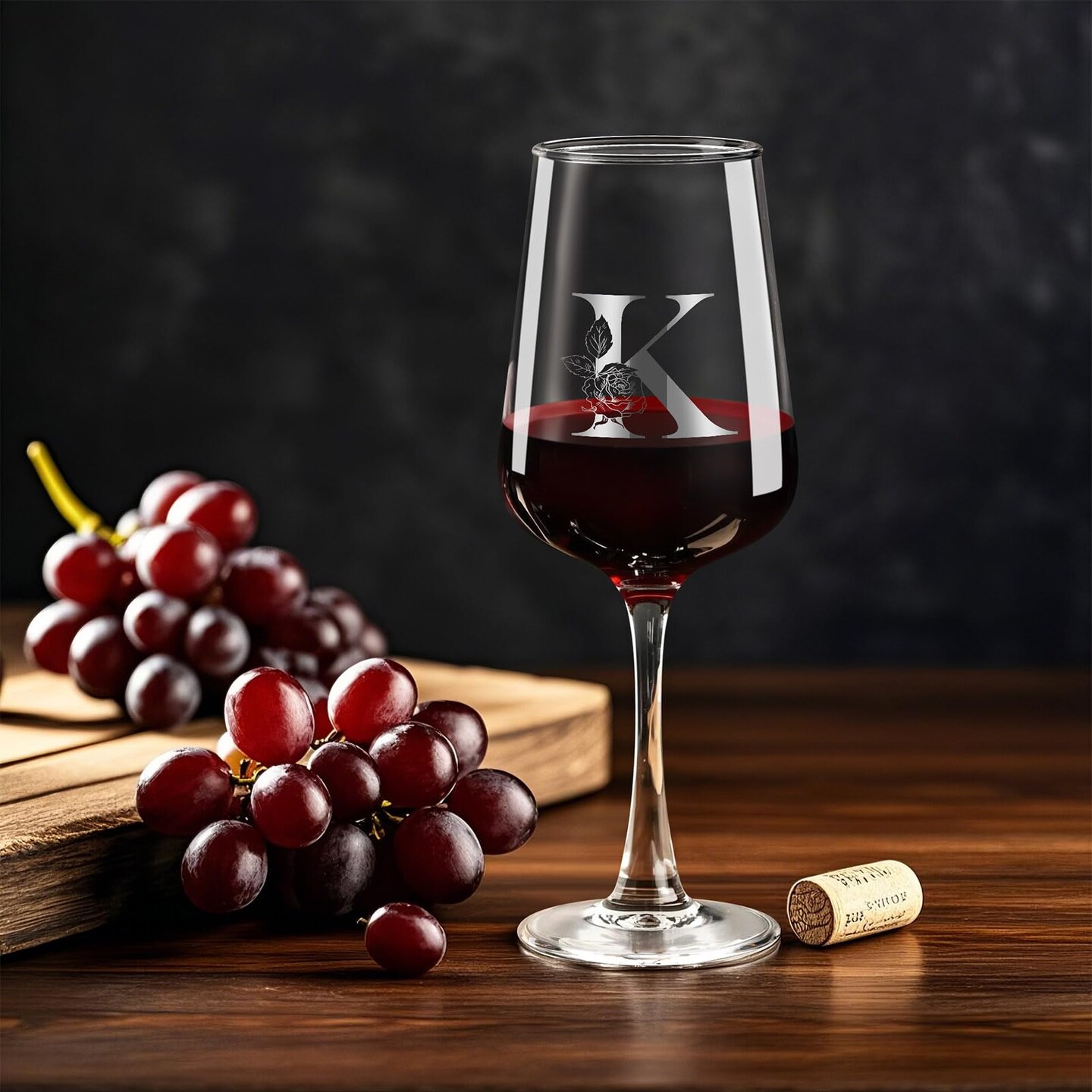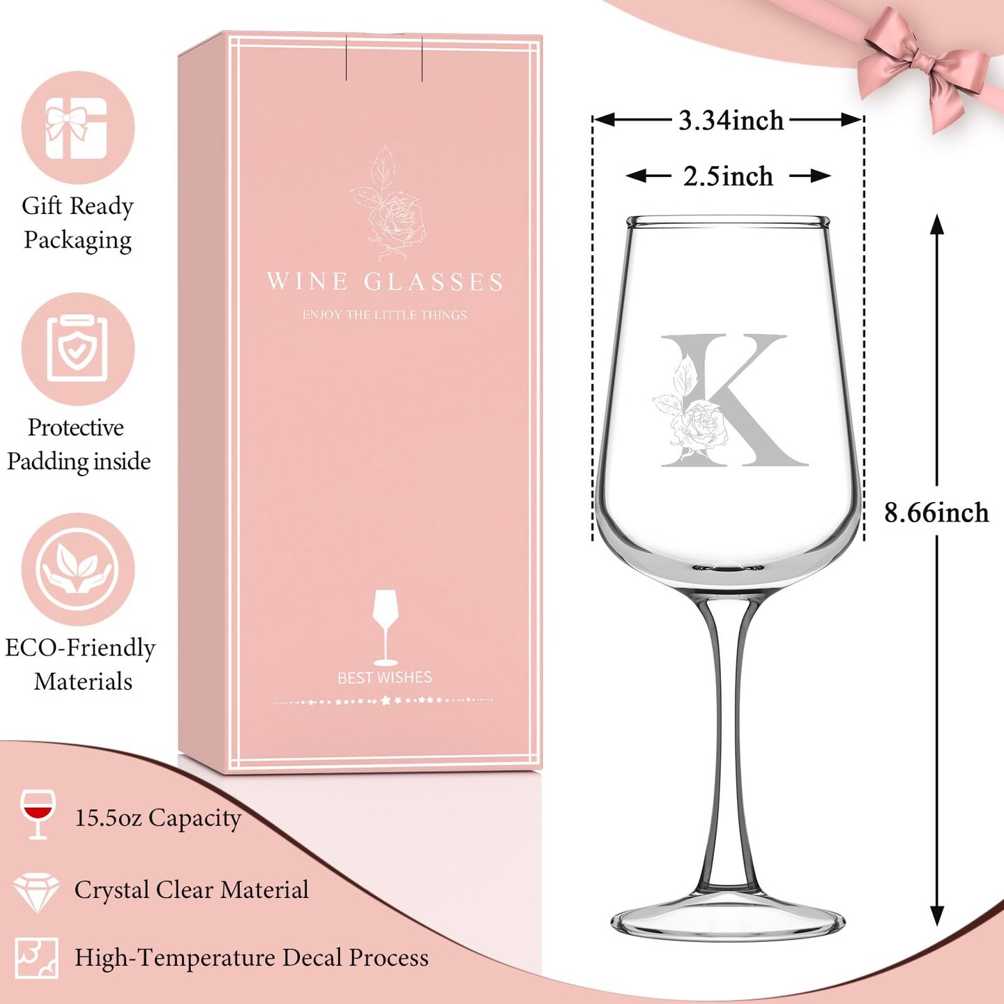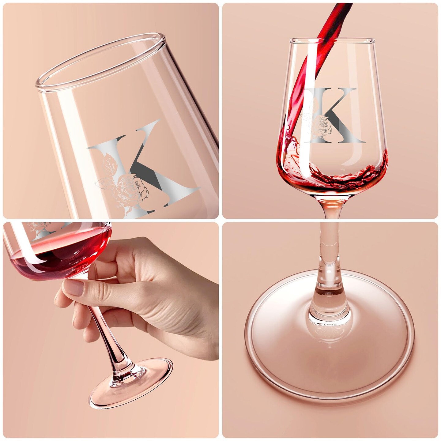 Mothers Day Gifts for Mom Grandma Wife Daughter Her, Personalized Initial Wine Glasses Custom Gift, Birthday Gifts for Women Mom Wife Best Friend Sister (K)