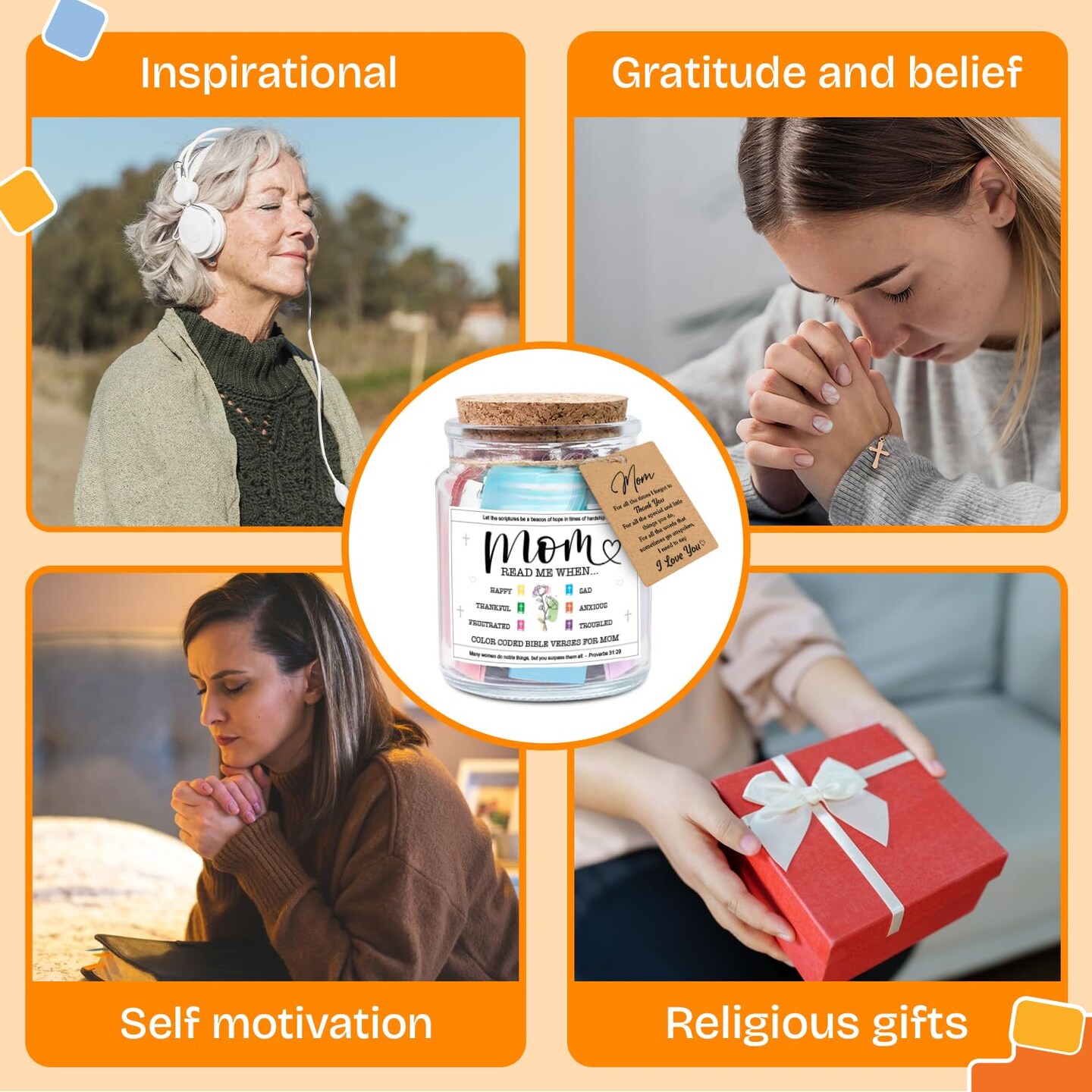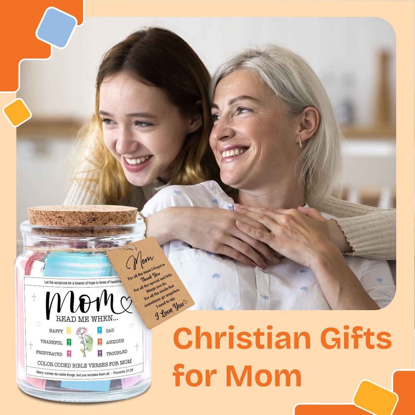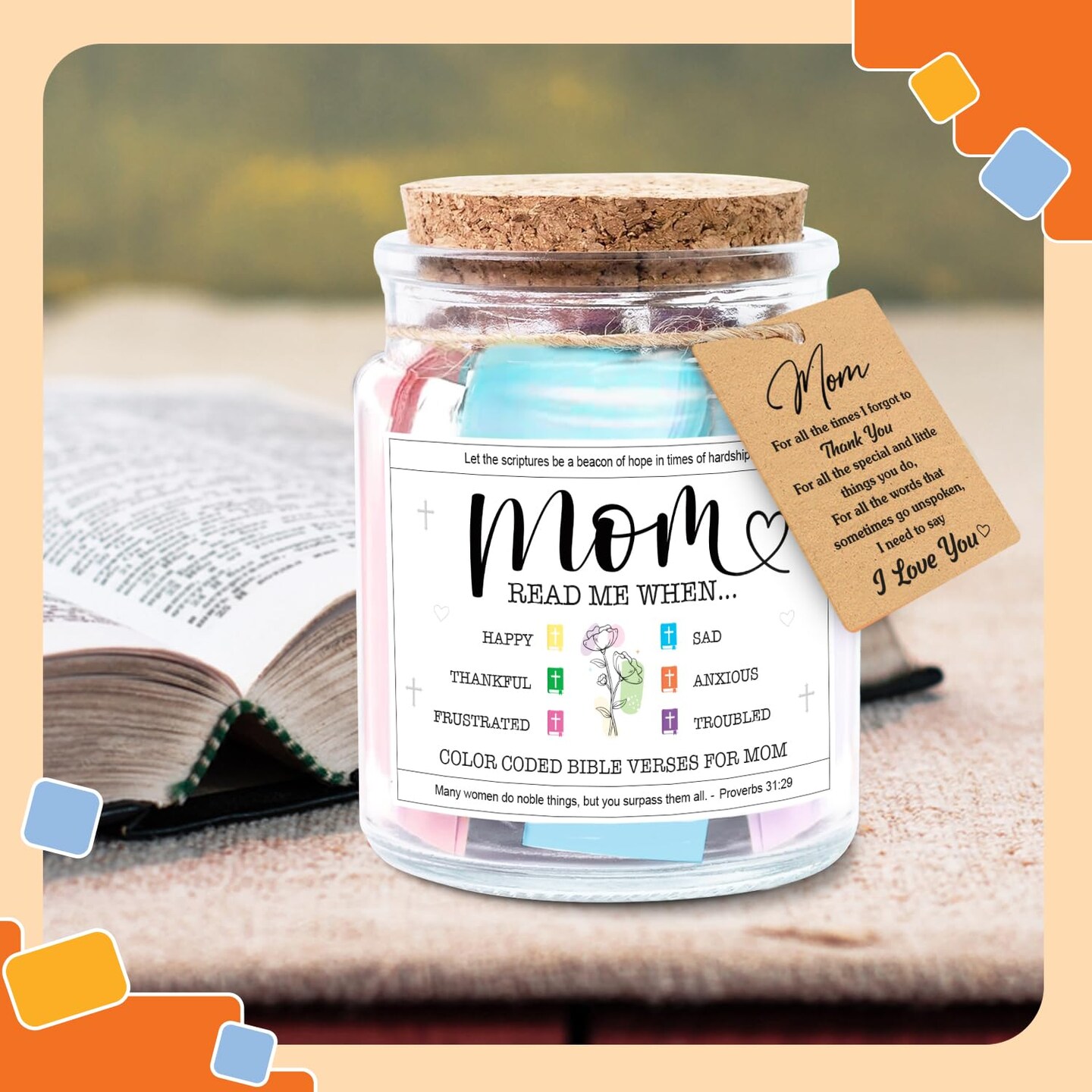 Mothers Day Gifts For Mom, Mom Gifts From Daughters Son on Mother Birthday, Bible Jar, Christian Gift for Wife, Thank You Gift Decorative Inspirational Scripture Jar with 92 Bible Verses
