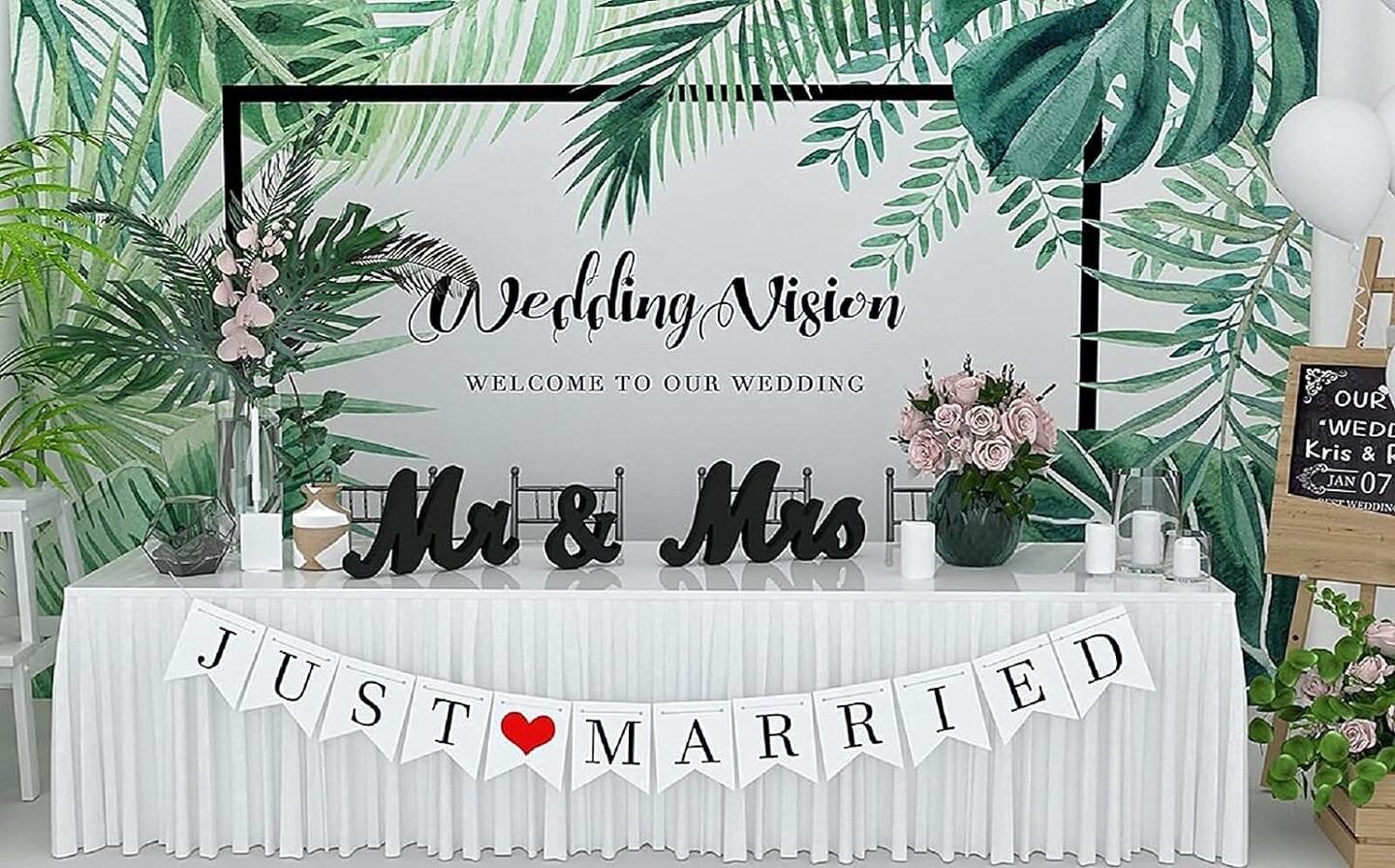 Mr and Mrs Sign & Just Married Banner for Wedding Decorations