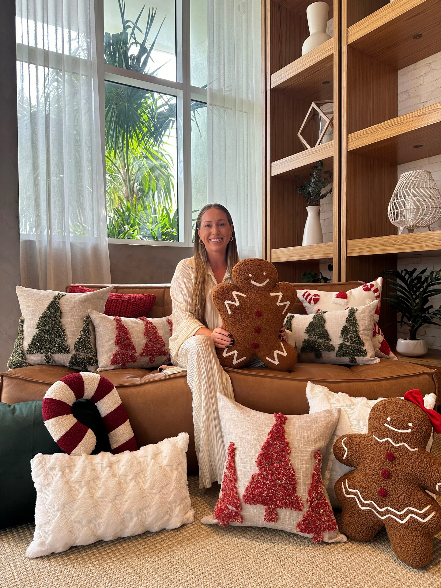 Ms. Gingerbread Stuffed Accent Pillow – Handcrafted Holiday Décor by Busa Designs